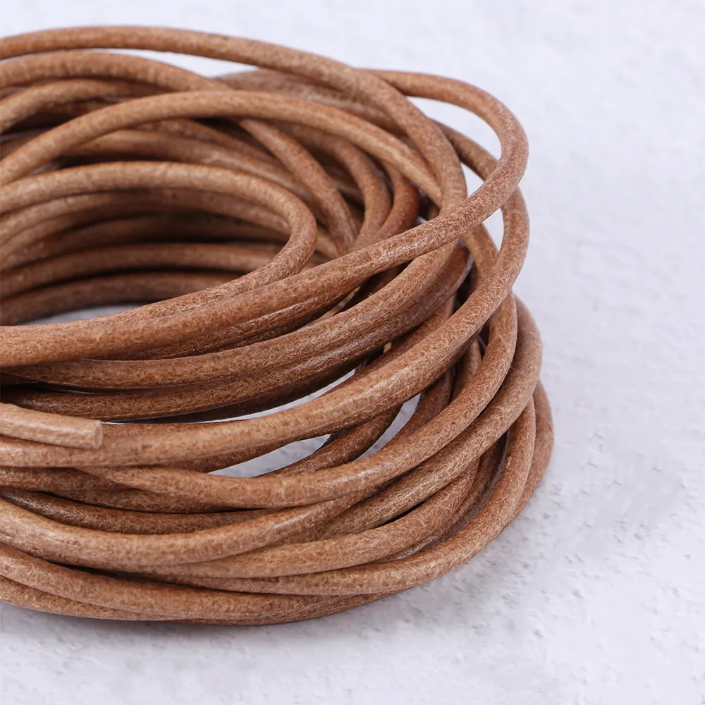 5 м натуральный Цвет Натуральная кожа шнур с круглым сечением для кроссовок строка для плетения браслетов, ожерелий и браслетов ювелирные изделия шнур диаметр 1/1.5/2/3 мм