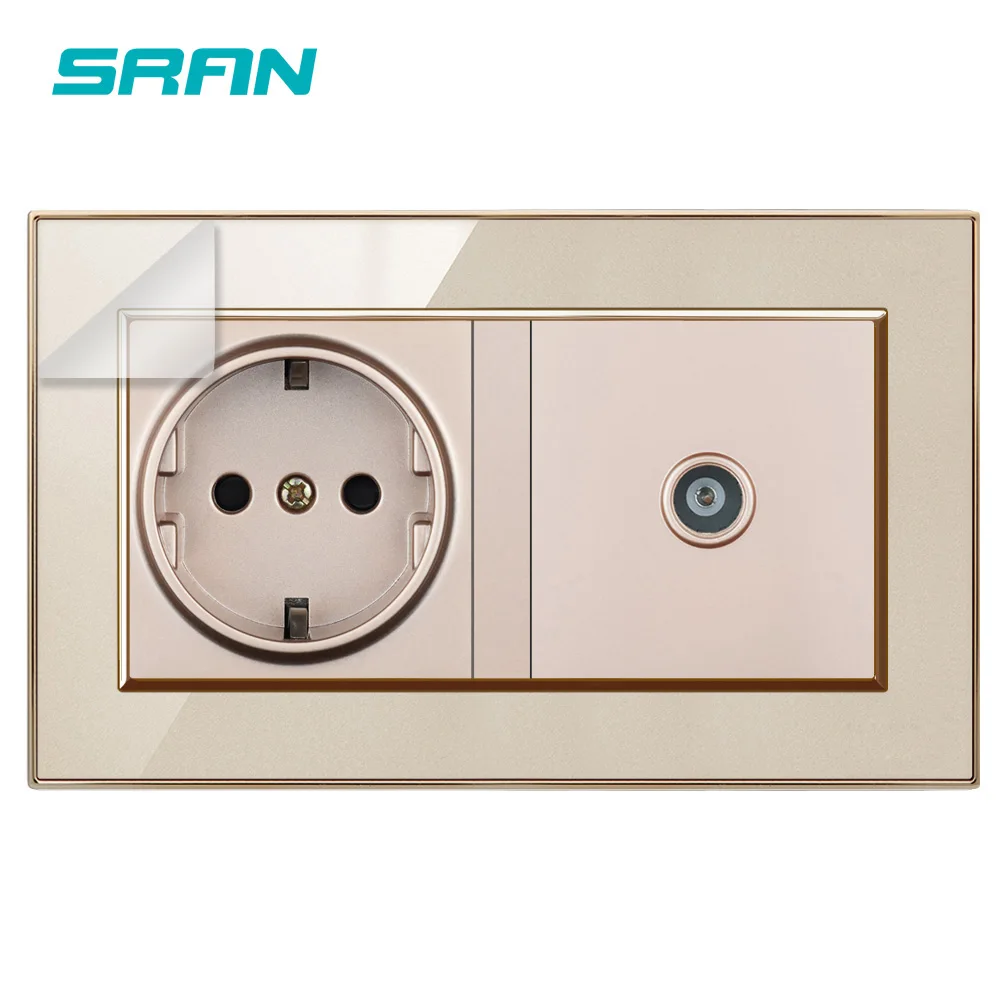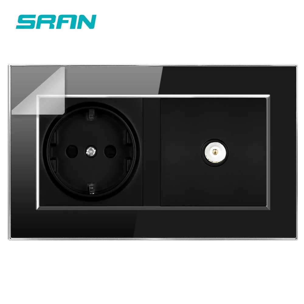 SRAN EU настенная розетка + ТВ розетка CAT5 огнестойкая кристальная акриловая панель 146*86 мм электрическая розетка черный/белый/золотой