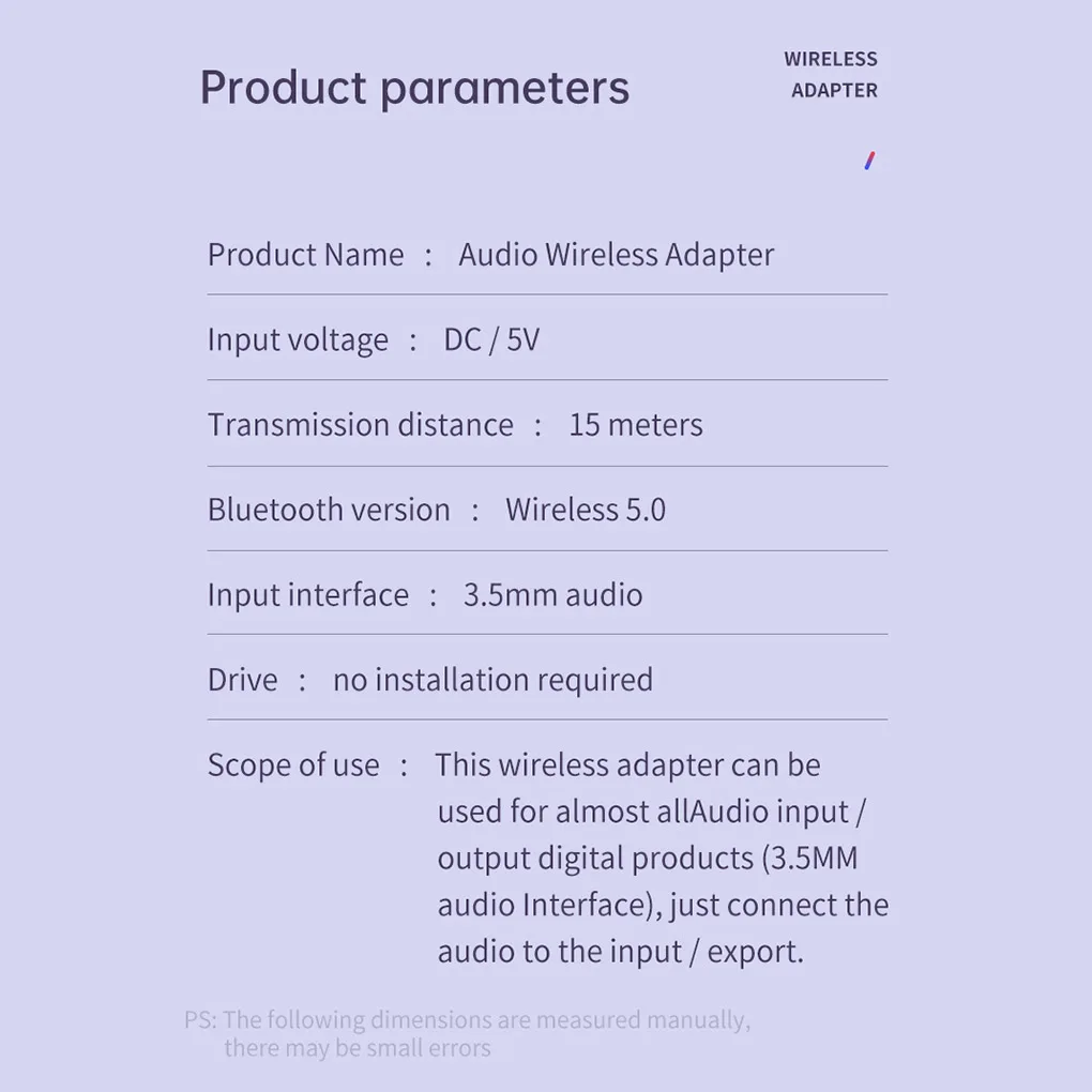 Без встроенного аккумулятора питание передатчика bluetooth 5,0 может быть введено через usb-интерфейс DC 5V.