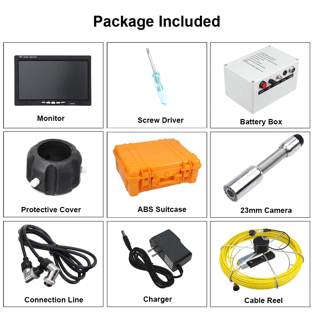 Этот продукт подходит для осмотра трубопровода, канализационных труб, воздуховодов, резервуаров, подводных и других темных условий, проверки внутренних трещин, коррозии, сварки, затычек и других необычных обстоятельств. Он широко используется в таких областях обнаружения, как муниципальные трубопроводы, электричество, телекоммуникации, полевые исследования и аварийное спасение.Функциональная Декорация40 метровый кабель