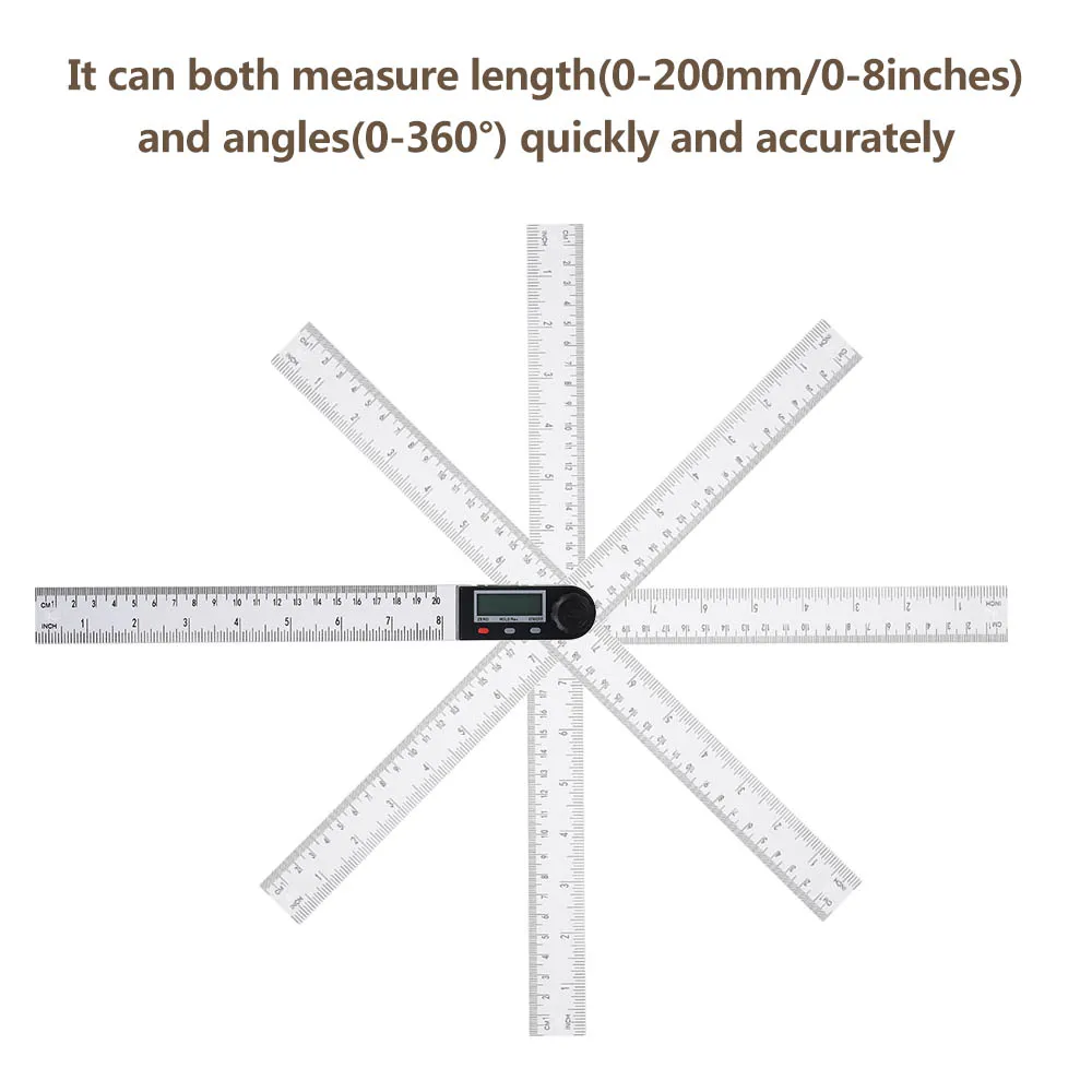 Это практичная угловая линейка 2 в 1. Его можно использовать как линейку и транспортир. Большой ЖК-дисплей очень удобен для чтения. Если вы ищете цифровую линейку углов ЖК-дисплея, это ваш идеальный выбор.