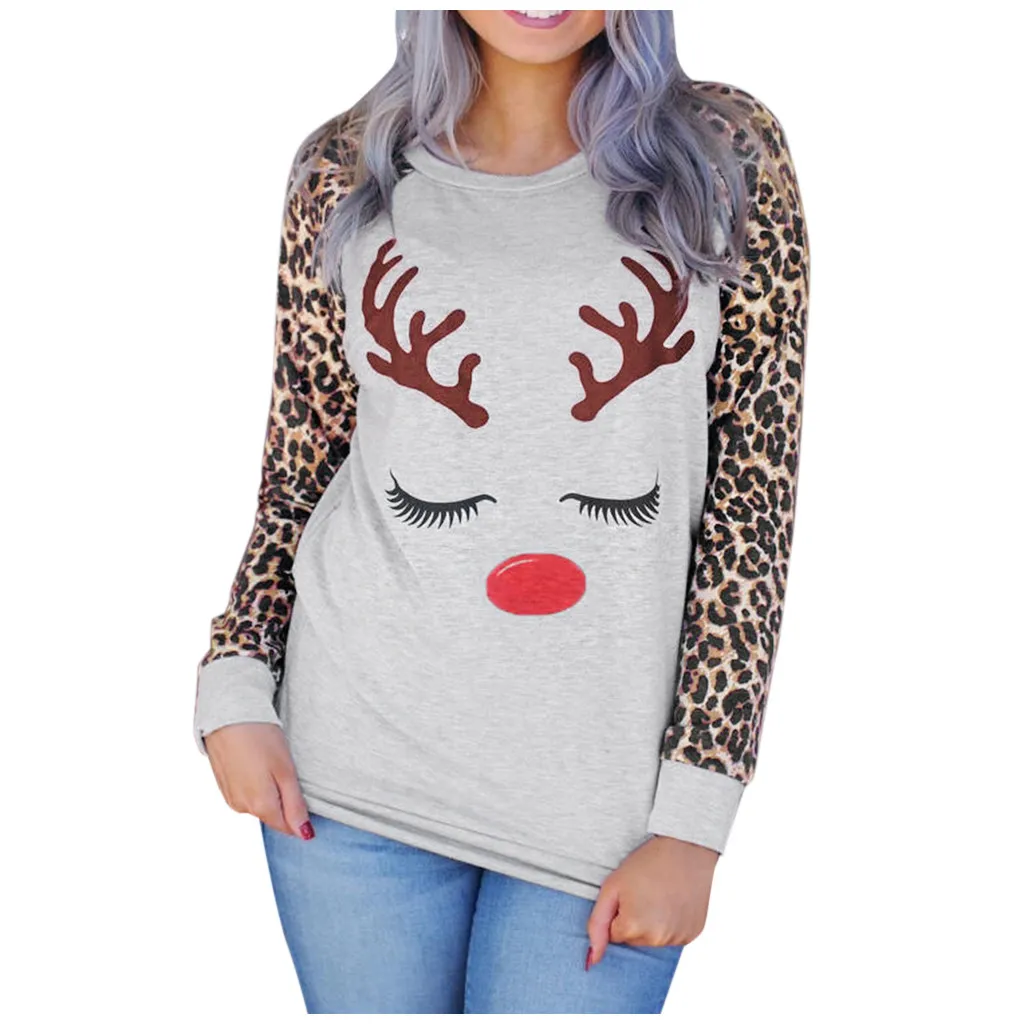 3.КруглыйШея,ДлинныйРукав, обычныйДлина,Натяните застежку,Рождественский узор с рогами,Леопардовый Пэчворк. Мило и мило. Свободный крой. TОбтягивающая резинка по краю делает изделие прилегающим и эластичным, но не свободным.