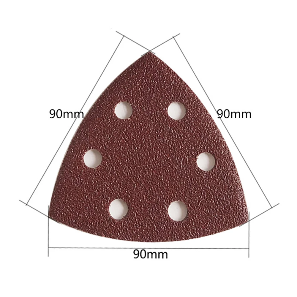 Цвет: темно-коричневый Материал: оксид алюминия Размер: 90x90 мм x 90 мм (3 края) Зернистость: грубая, средняя, тонкая, очень тонкая Подходит для сандалов 90 мм. Крюк и петля для быстрого крепления. Количество: 10 ⑤ упак. Зернистость: P40-P2000 Форма: треугольник с 6 отверстиями