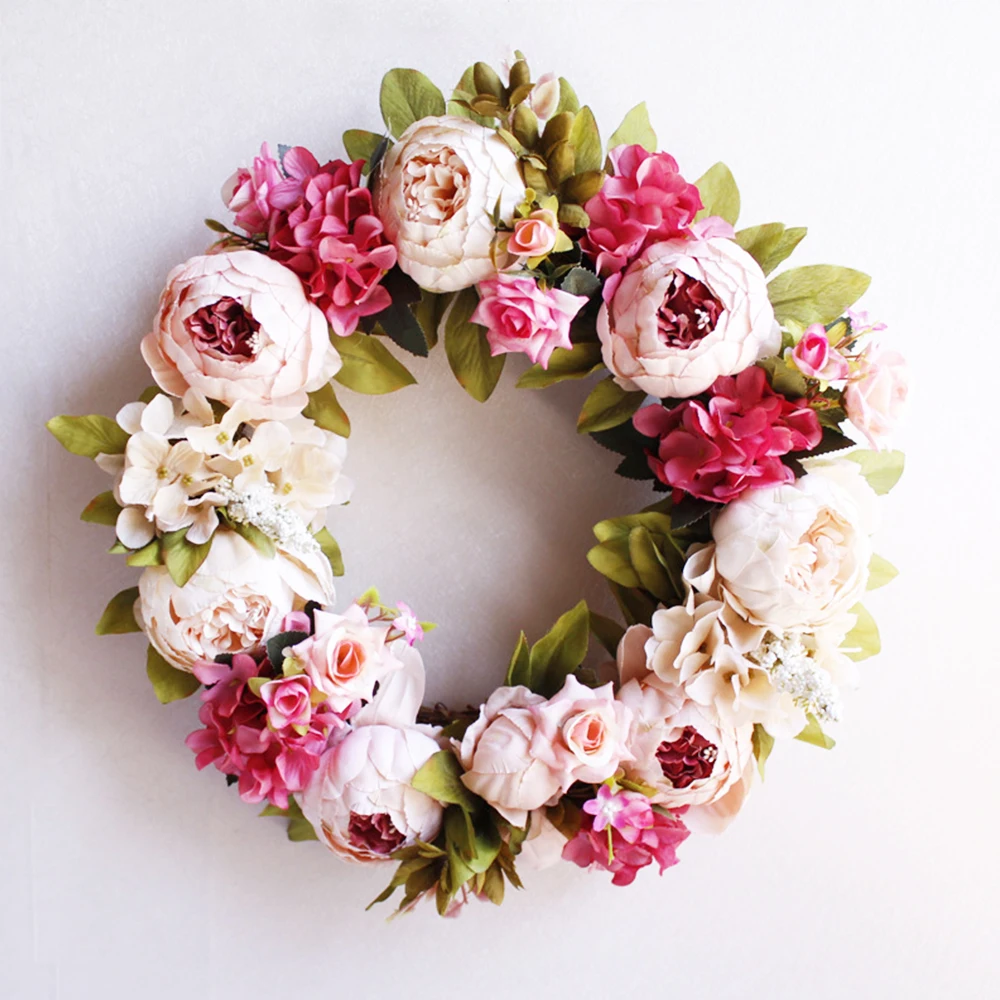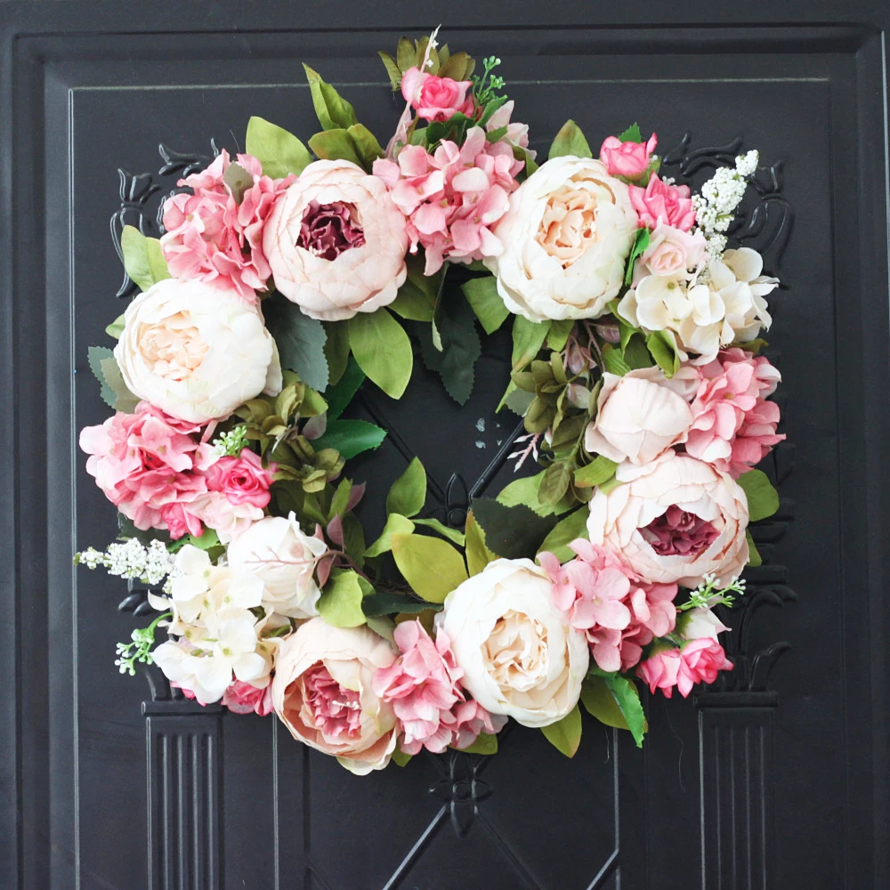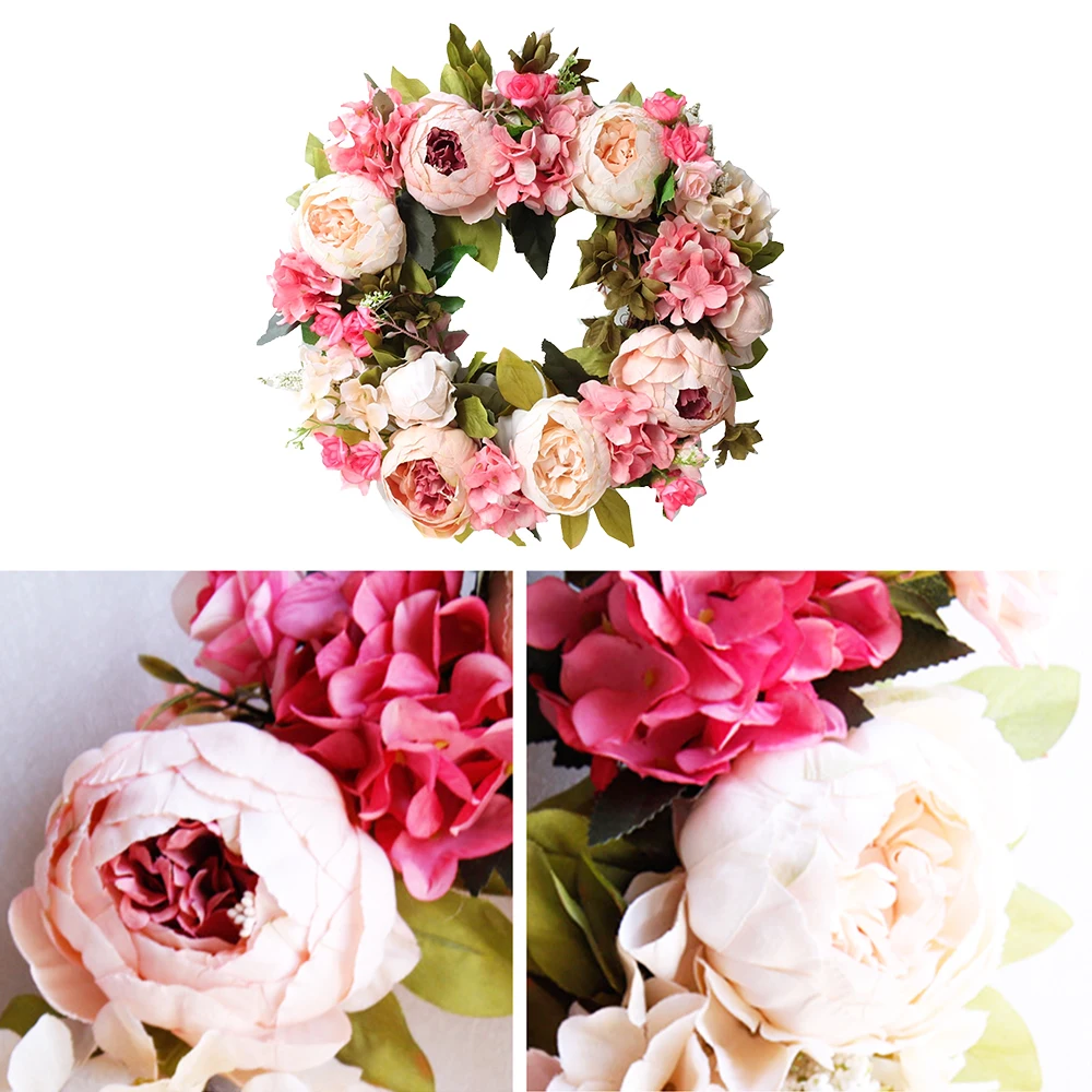 Искусственные венки с цветками и листьями, шелковые венки производятся с использованием синтетических материалов и хорошо спроектированы и изготовлены таким образом, чтобы они не были внешними. Координаты со смешанным центром пиона.