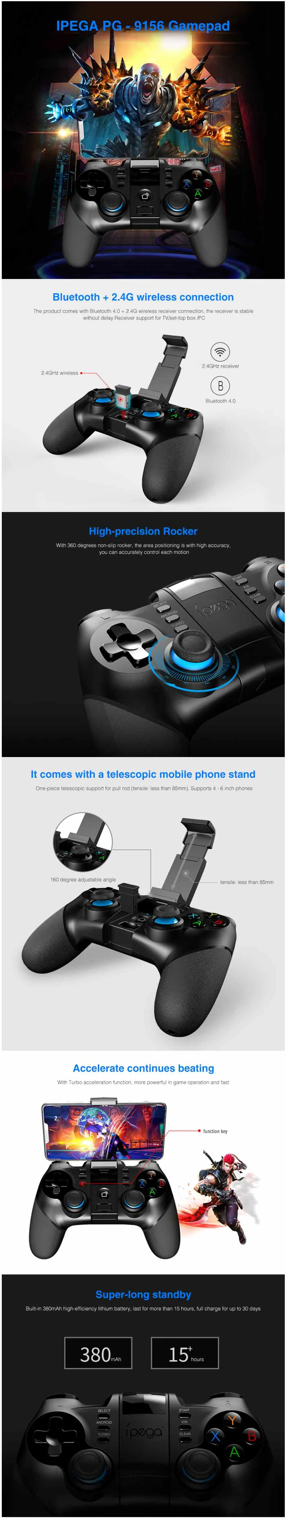 1 геймпад Ipega PG-9156, совместимый с bluetooth 1 приемник 2,4G 1 USB-кабель