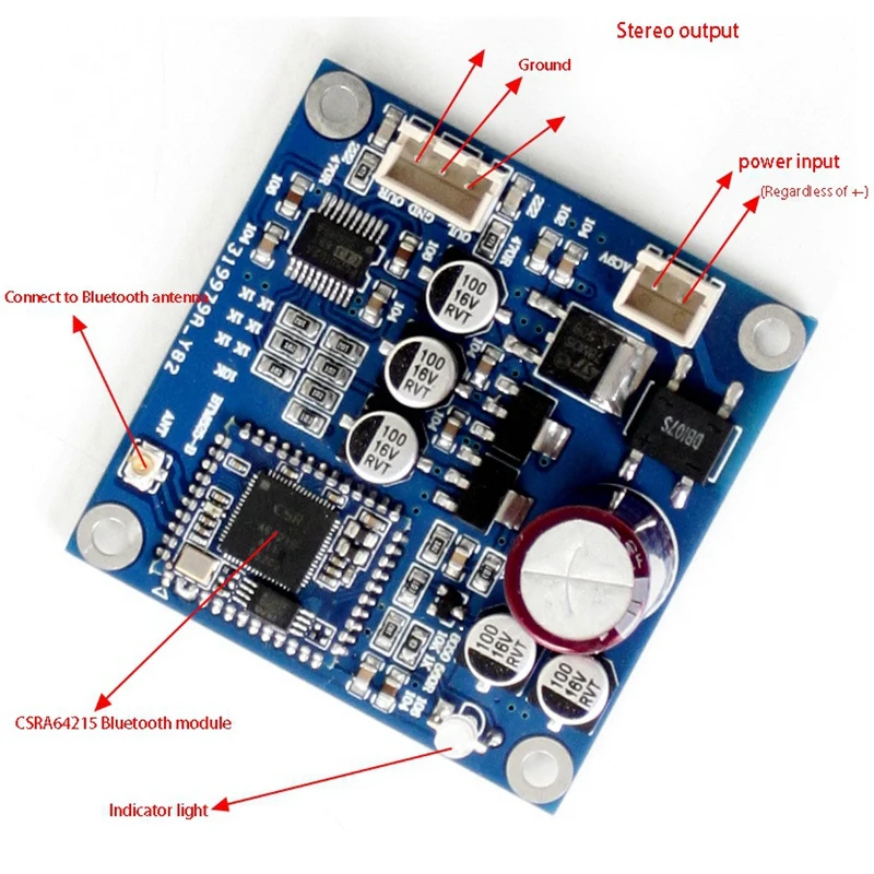 AC6-12V 1A 4.2 Bluetooth Power Amplifier Board CSRA64215 Stereo Bluetooth 4.2 (Support Aptx-Ll) Board