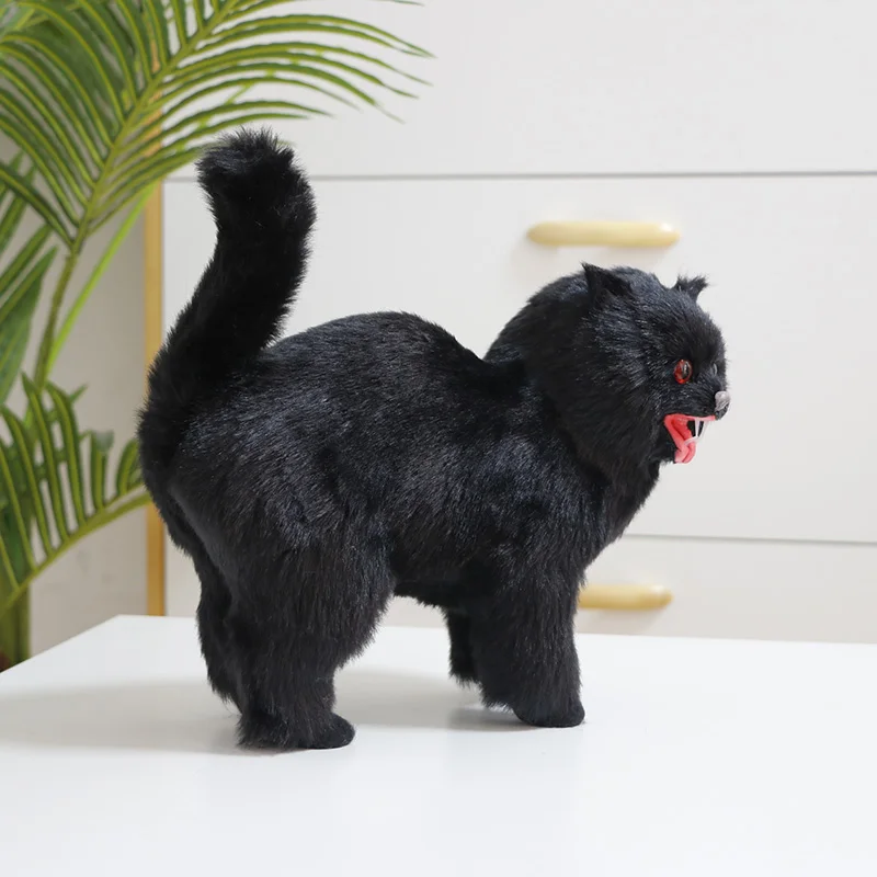 Хэллоуин кошка модель украшения Размер: длина 25 см, ширина 13 см, высота 25 см Ручная работа, внешний пух, внутренняя пластиковая модель