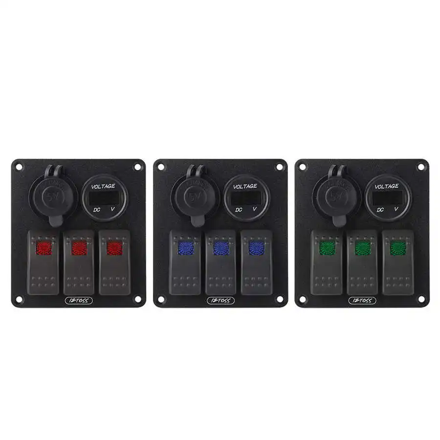 Многофункциональные 3 банды Клавишные переключатели панель с вольтметром дисплей 4.8A зарядное устройство для RV лодки