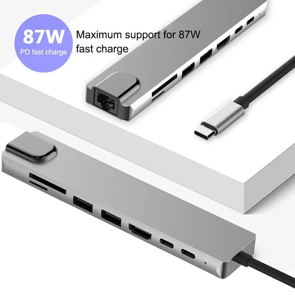 Концентратор USB Type C адаптер док-станция с 4K HDMI PD RJ45 Ethernet Lan зарядка многофункциональная кардридер двойной тип C