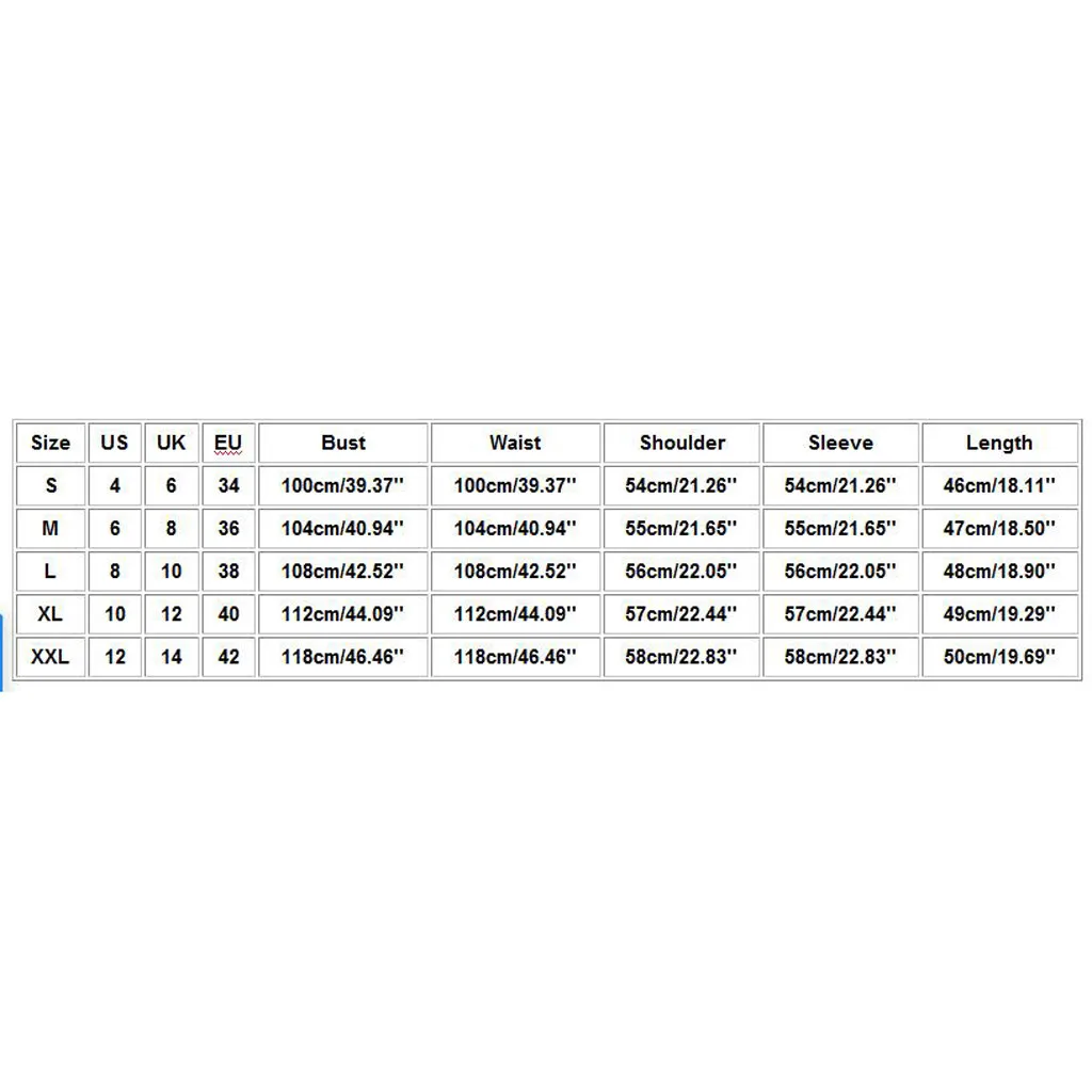 Что вы получаете: 1 шт. для женщинСвитерРазмеры США Великобритания ЕС Бюст Талия Плечо Рукав Длина S 4. 6 34 100 см/39,37'' 100 см/39,37'' 54 см/21,26'' 54 см/21,26'' 46 см/18,11'' М 6 8 36 104 см/40,94'' 104 см/40,94'' 55 см/21,65'' 55 см/21,65'' 47 см/18,50'' L 8 10 38 108 см/42,52'' 108 см/42,52'' 56 см/22,05'' 56 см/22,05'' 48 см/18,90'' XL 10 12 40 112 см/44,09'' 112 см/44,09'' 57 см/22,44'' 57 см/22,44'' 49 см/19,29'' XXL 12 14 42 118 см/46,46'' 118 см/46,46'' 58 см/22,83'' 58 см/22,83'' 50 см/19,69''