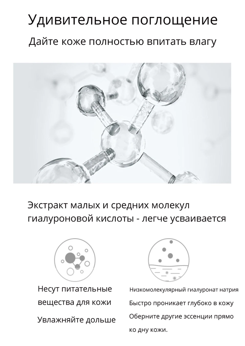 Дистиллированная вода, глицерин, пропиленгликоль, гидроксиэтилцеллюлоза, карбомер, гиалуроновая кислота, триэтаноламин, полиакрилат натрия, метилпарабен, пропилпарабен, бис (гидроксиметил) imidazolidine база мочевины.