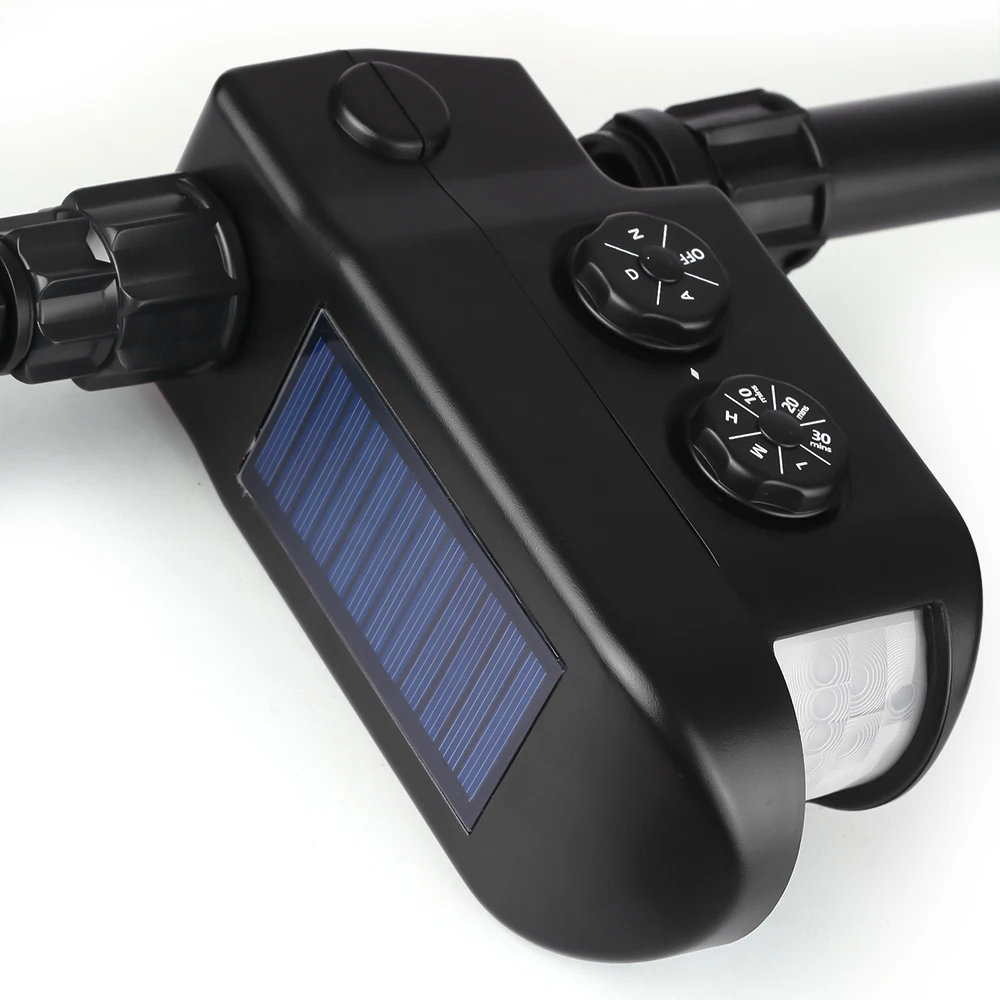 Когда вторгающиеся животные попадают в диапазон обнаружения PIR, Отпугиватель может извлекать воду из вращающегося спринклера и выпустить сильную вспышку, чтобы увезти их. Держите свой сад, сад, питомник и пруд от неожиданных животных.