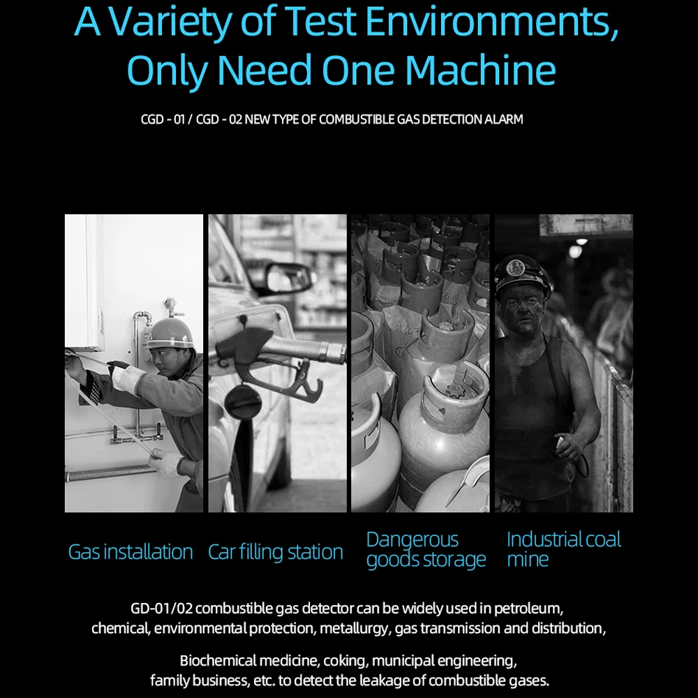 Может широко использоваться в нефтяной, химической, экологической защите, металлургии, газотранспорте и дистрибуции, коксовании, муниципальной инженерии, домашнем бизнесе и других областях для обнаружения утечки горючих газов.