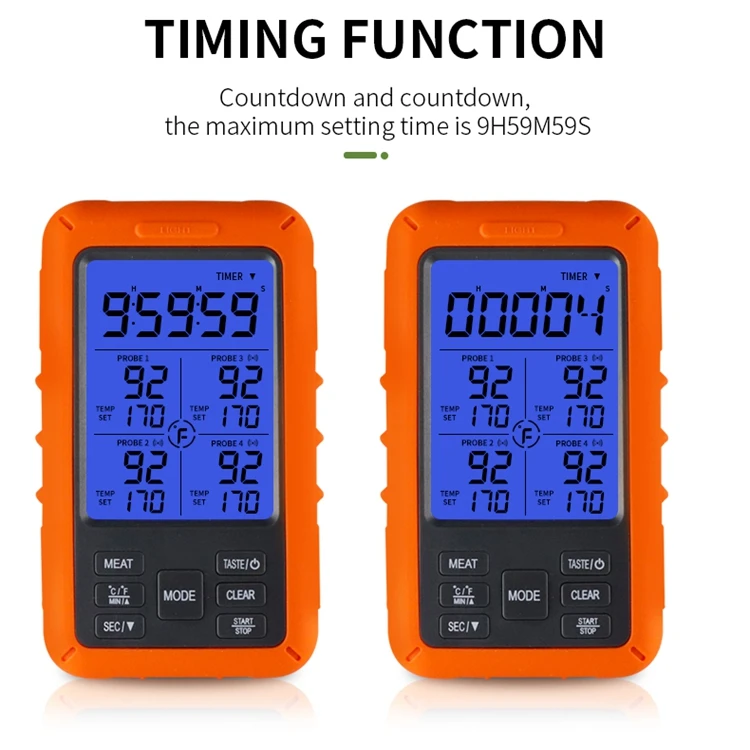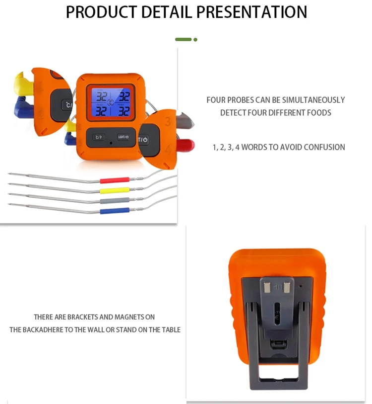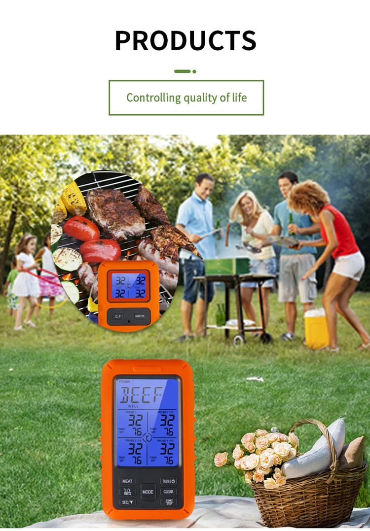 Беспроводной термометр для барбекю, четыре зонда для барбекю, курильщика, гриль, печь, таймер для мяса, сигнализация, водонепроницаемый кухонный дистанционный ЖК-термометр
