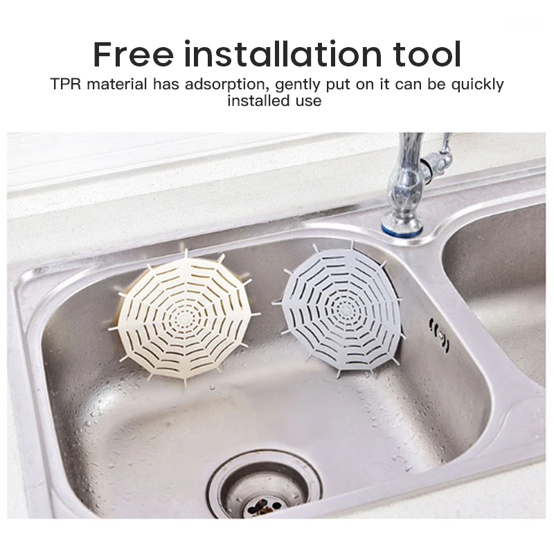 Scope of use: TPR elastic material, lovely spider's web shape, anti-displacement suction cup design suitable for home drain, effective filtering, preventing blockage.