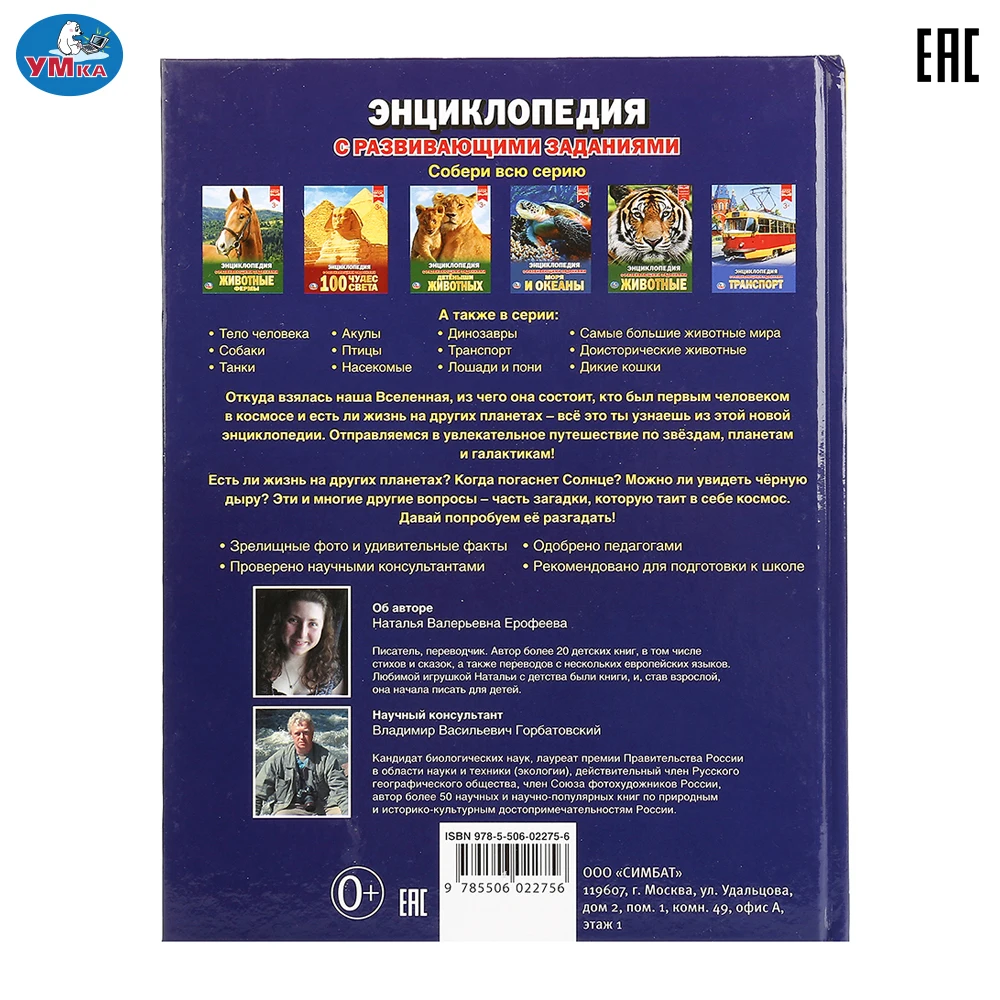 Энциклопедия одобрена педагогами и проверена научными консультантами. Зрелищные фото и удивительные факты о космосе сразу увлекут ребёнка и помогут ему быстро, эффективно и с удовольствием усвоить новую информацию.