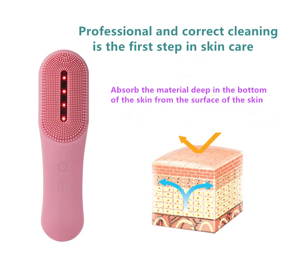 LED фотон омоложение очищающее средство для лица Вибрирующая щетка мини очиститель для лица силиконовая Глубокая чистка пор Электрический массаж лица Водонепроницаемый