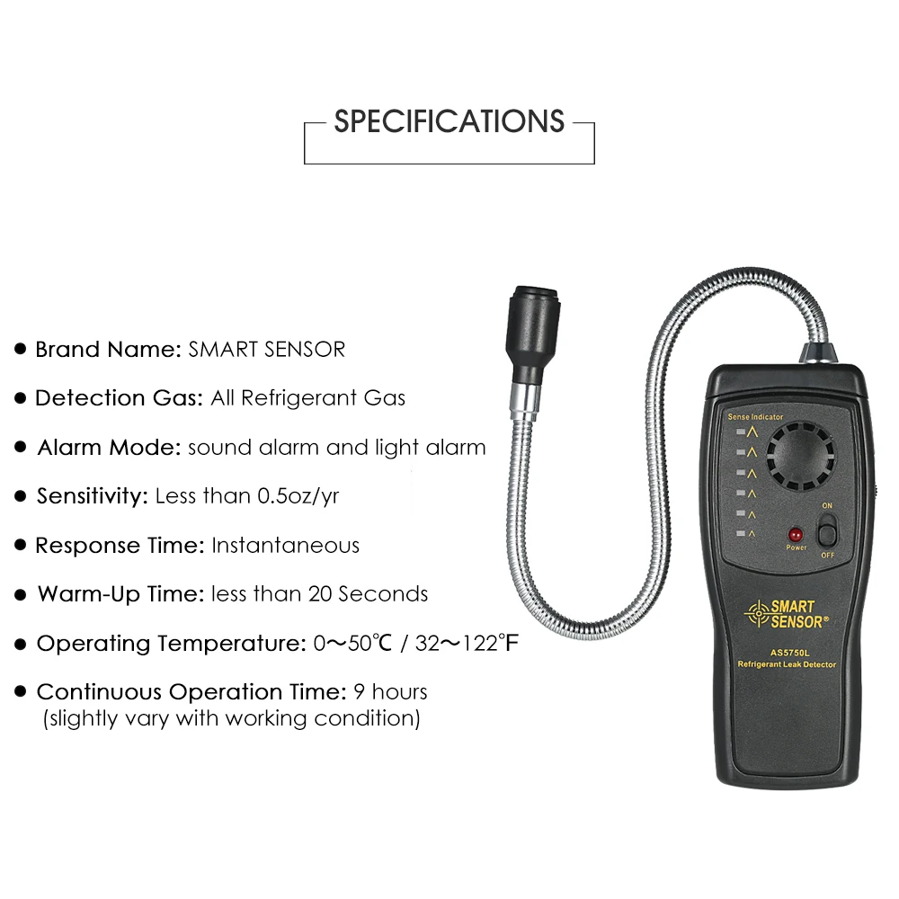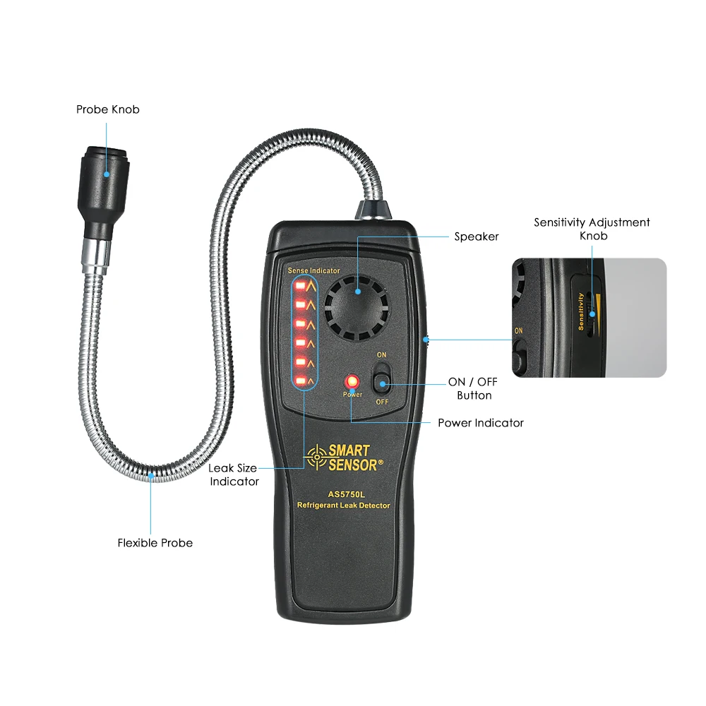 Этот детектор утечки газа используется для обнаружения галогенного газа с высокой чувствительностью. Он может обнаруживать утечку в кондиционировании воздуха, системах замораживания и т. д.