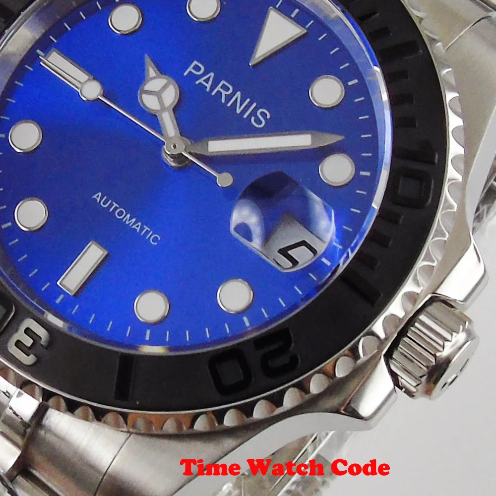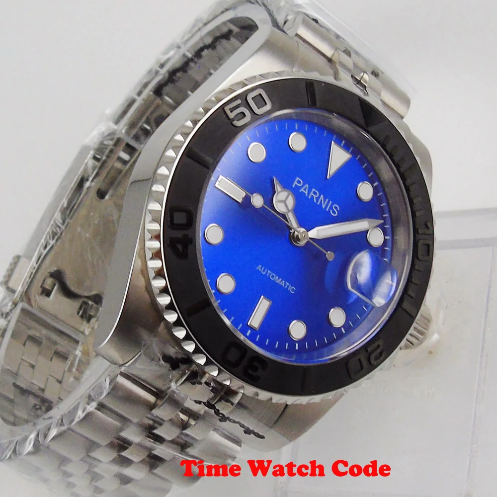 -- Механизм: Mingzhu 2813 Miyota 8215 механический автоматический механизм; -Материал корпуса: нержавеющая сталь 316L с керамическим ободком; -Водонепроницаемость 3 АТМ; -- Размер корпуса: диаметр 40 мм; Толщина 14 м; -Циферблат: синий цвет; Светящиеся стрелки и отметки; Окошко даты в положении «3 часа»; -Размер ремешка: ширина 20 мм; -- Стекло: сапфировое стекло; -- Материал ремешка: нержавеющая сталь; Раскладная Пряжка;