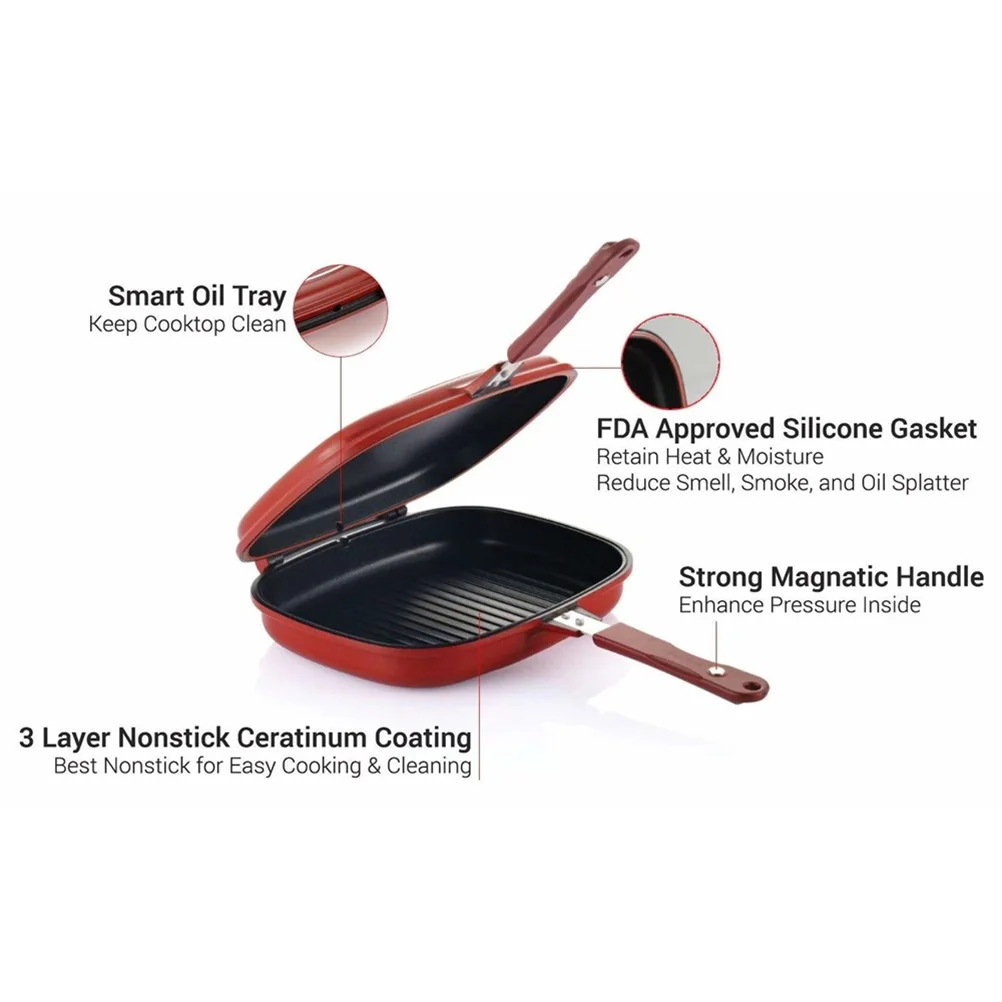 [Уникальный дизайн] Эта сковорода разработана с принципом скороварки, чтобы полностью запечатать еду, сохранить питательные вещества и сделать еду более здоровой и вкусной. Оснащен оригинальным силиконовым уплотнительным кольцом и магнитным замком 4000Gs, питание может быть водонепроницаемым и безопасным во время приготовления пищи.