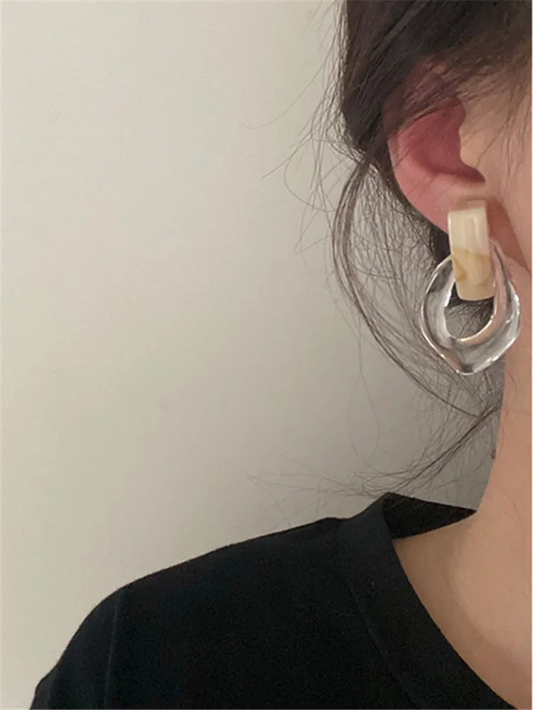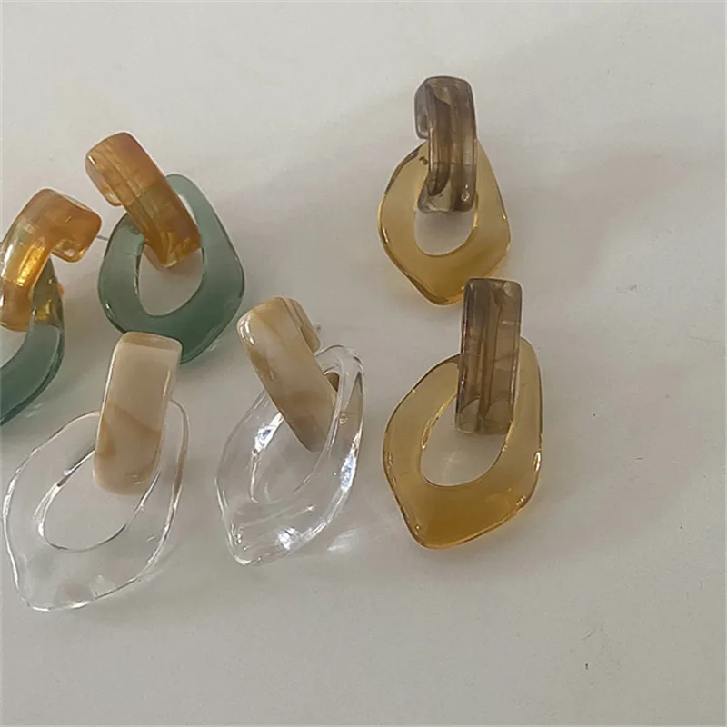 Kshmir Earrings Transparent Chain Resin Fashion European and American Style Resin Korean Retro Women Geometric Punk Zinc Alloy
