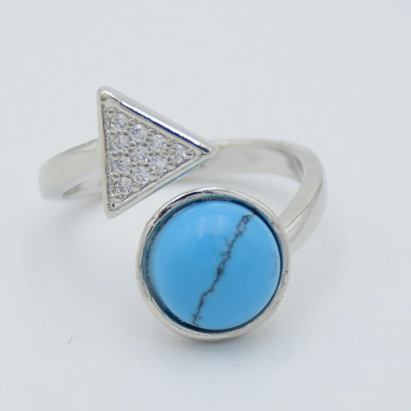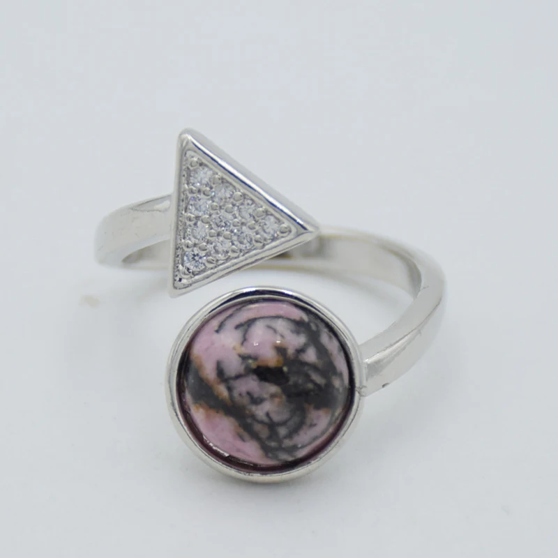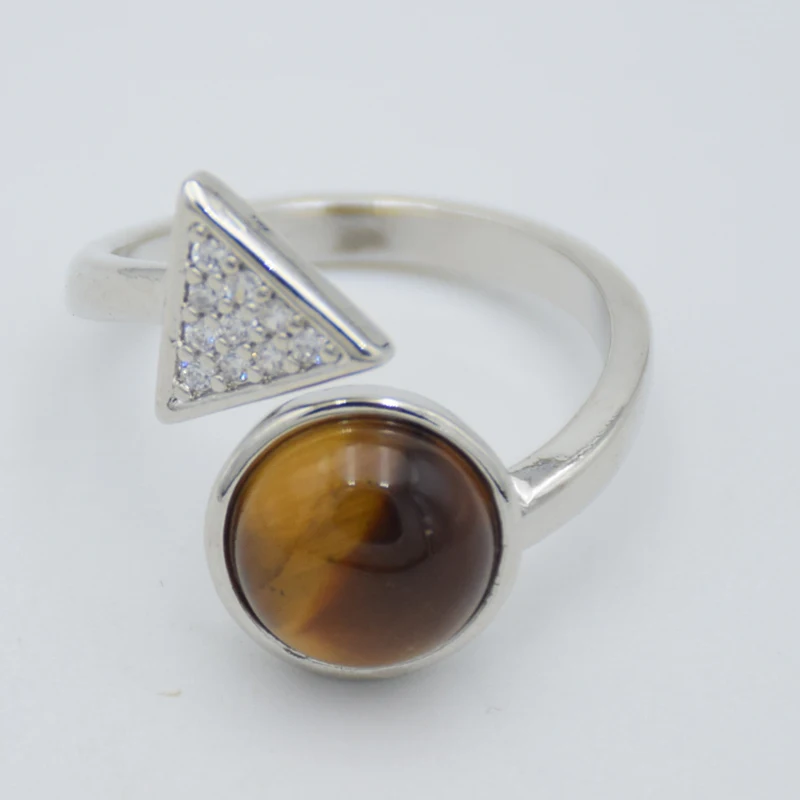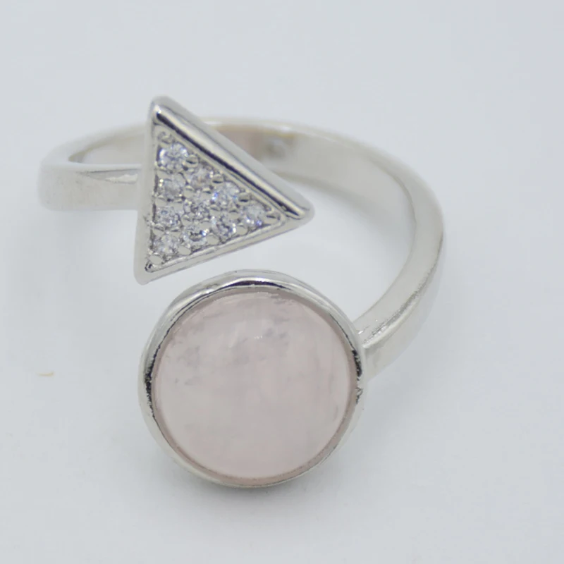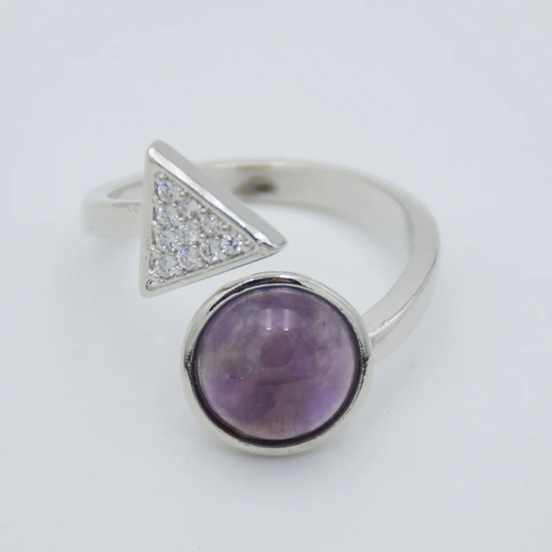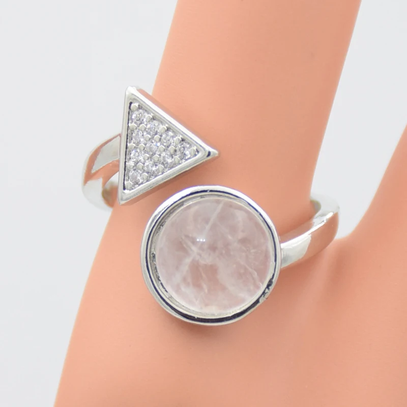 Круглые бусины из натурального камня, Открытое кольцо, заживляющее Кристальное треугольное инкрустированное цирконием, регулируемые кольца на палец, Модные женские ювелирные изделия