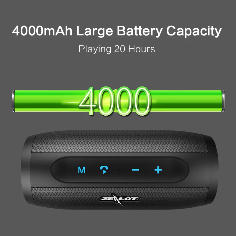 Zealot S16 TWS беспроводной синий зуб динамик Портативный HIFI сабвуфер стерео, 4000 мАч большой аккумулятор, водонепроницаемый внешний аккумулятор USB