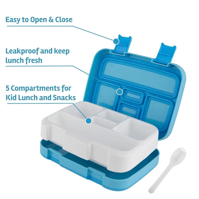 Безвредный для детей дизайн-наша детская коробка bento сделана из лучшего качества без BPA материала, легкий вес, компактный, устойчивый к падению, с резиновым покрытием краев, прочная конструкция и лучший размер отсека, очень подходит для маленьких детей (рекомендуемый возраст-От 3 до 7 лет) и легко открыть защелку маленькой руки.