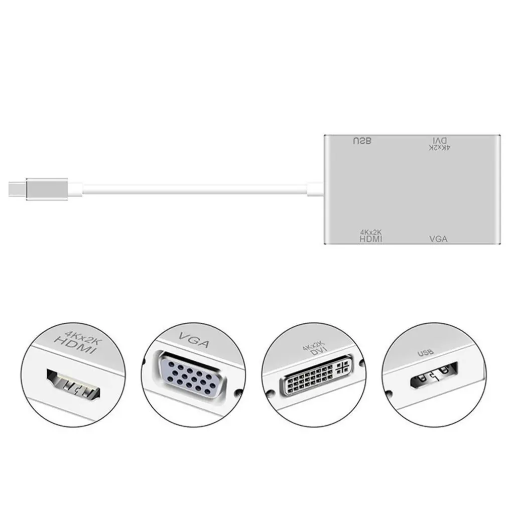 Внешний диаметр: USB C к VGA DVI HDMI USB 4 в 1 адаптер
