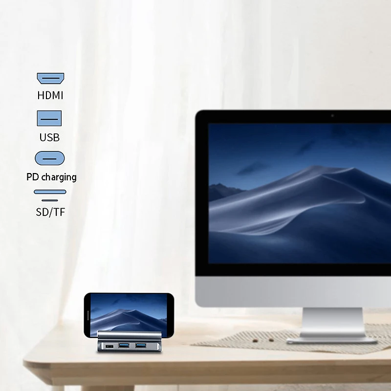 Type C HUB Docking Station USB-C to HDMI Dock Power Adapter Vertical Base with Bracket