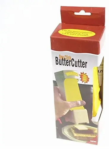 Made of plastic with stainless steel blade Product Dimensions 3 x 8 x 2 inches Easily slice cooled butter evenly May be stored in refrigerator for easy use; dishwasher safe A handy holiday table and buffet helper