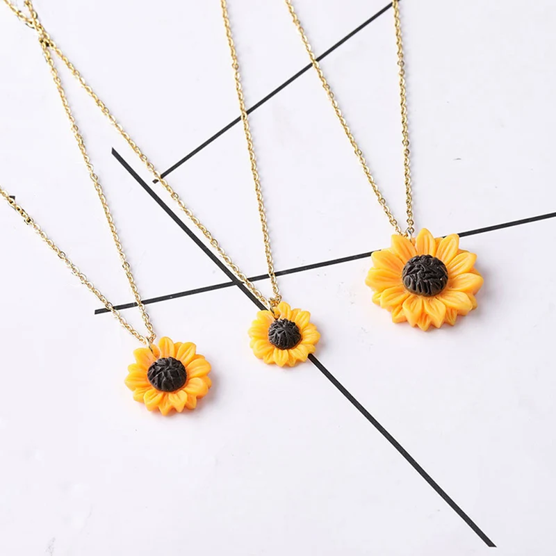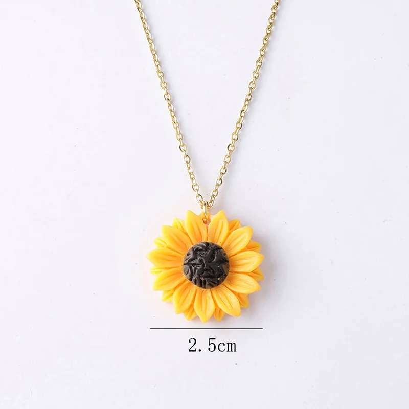 New Sunflower Pendant Necklace Gold Color Chain 1.5cm 1.8cm 2.5cm Resin Flower Collar Necklace For Women Girl Jewelry Gift