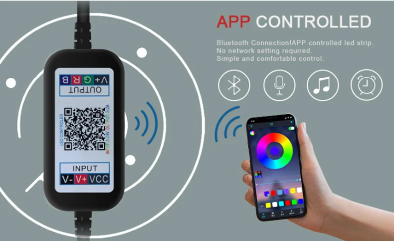 Беспроводной bluetooth-контроллер. Светодиодный светильник с Wi-Fi, управляемый приложением, может управляться смартфоном.
