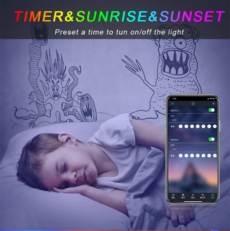 Встроенный микрофон с высокой чувствительностью, светильник с спектром и регулировка цвета автоматически основываются на окружающем звуке, светильник s следует за музыкой и микрофоном. Позволяет менять светильник 16 разных цветов. И каждый цвет с регулируемой яркостью.
