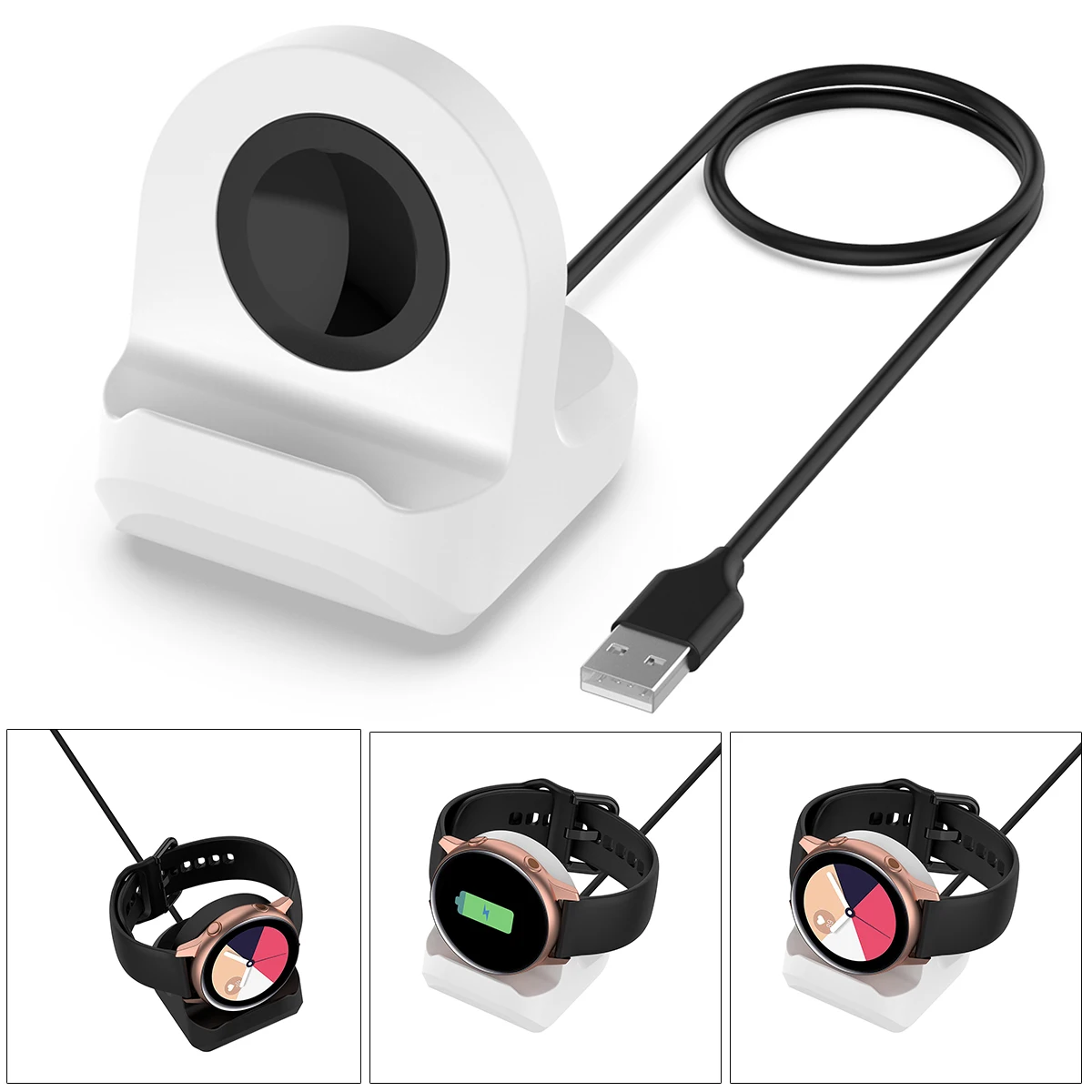 Этот продукт может универсально поддерживать мобильные телефоны с беспроводной зарядкой. Положение часов можно заряжать только по беспроводной сети для Galaxy watch Active R500, и оно не подходит для зарядки других брендов умных часов.