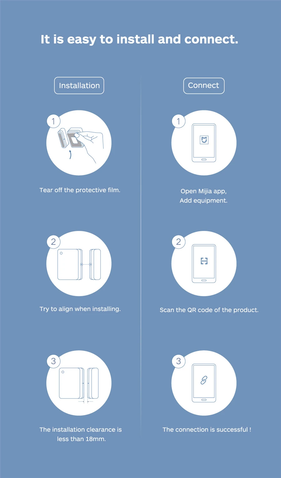 • Так что вы можете быть уверены, когда выходите. Через магнитную индукцию на дверном и оконном датчике, судите о состоянии открытия и закрытия. После доступа к шлюзу Bluetooth, вы можете проверить состояние устройства через мобильный телефон в любое время и в любом месте