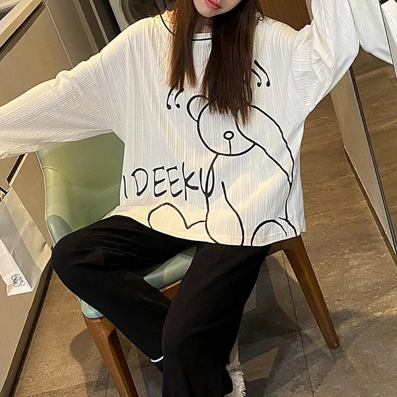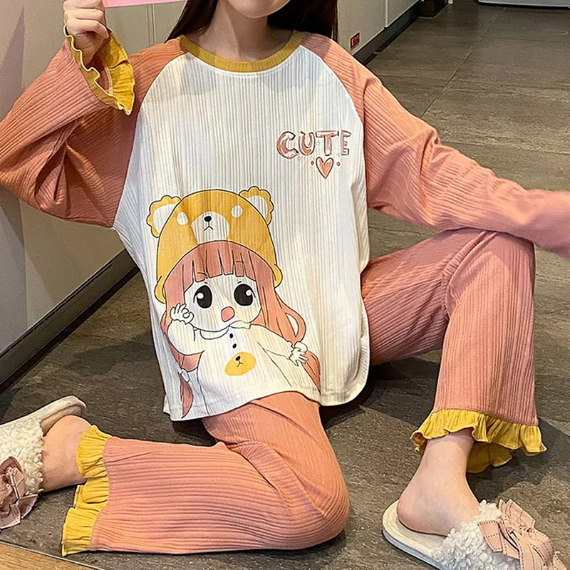 Зимняя Пижама для сна и отдыха, Топ с длинным рукавом и длинные брюки, Женский пижамный комплект, Мультяшные пижамы, хлопковая одежда для сна для женщин, M L XL XXL XXXL.