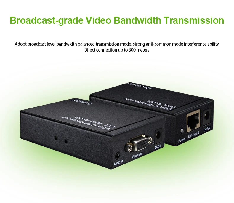 Используйте один сетевой кабель UTP Cat5/5e/6 для передачи видео и аудио VGA в режиме реального времени, синхронной передачи аудио и видео в режиме реального времени, без задержек и асинхронности