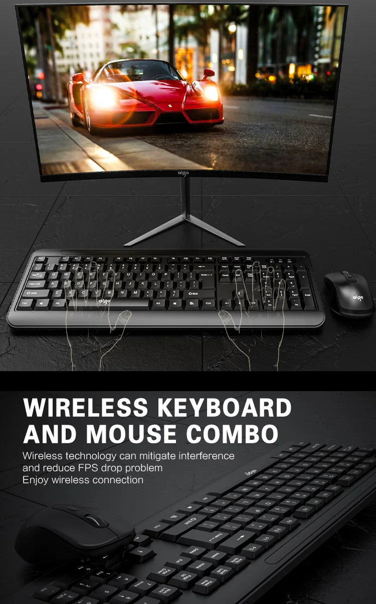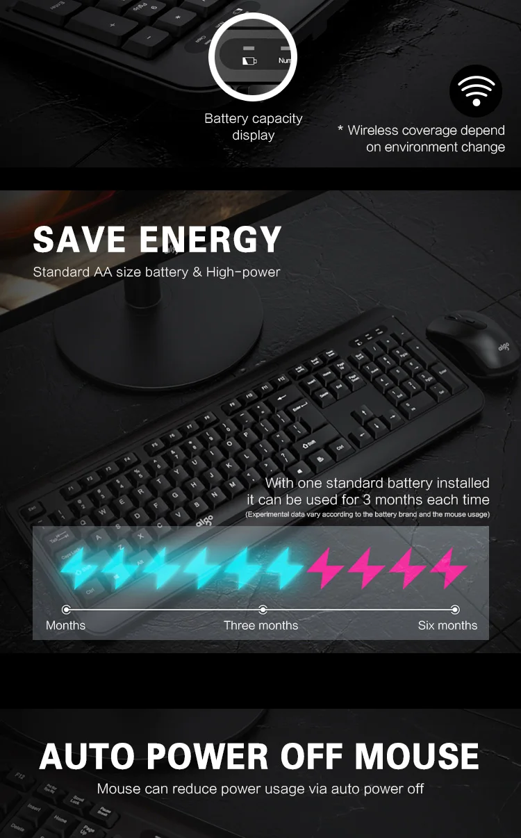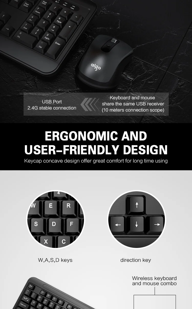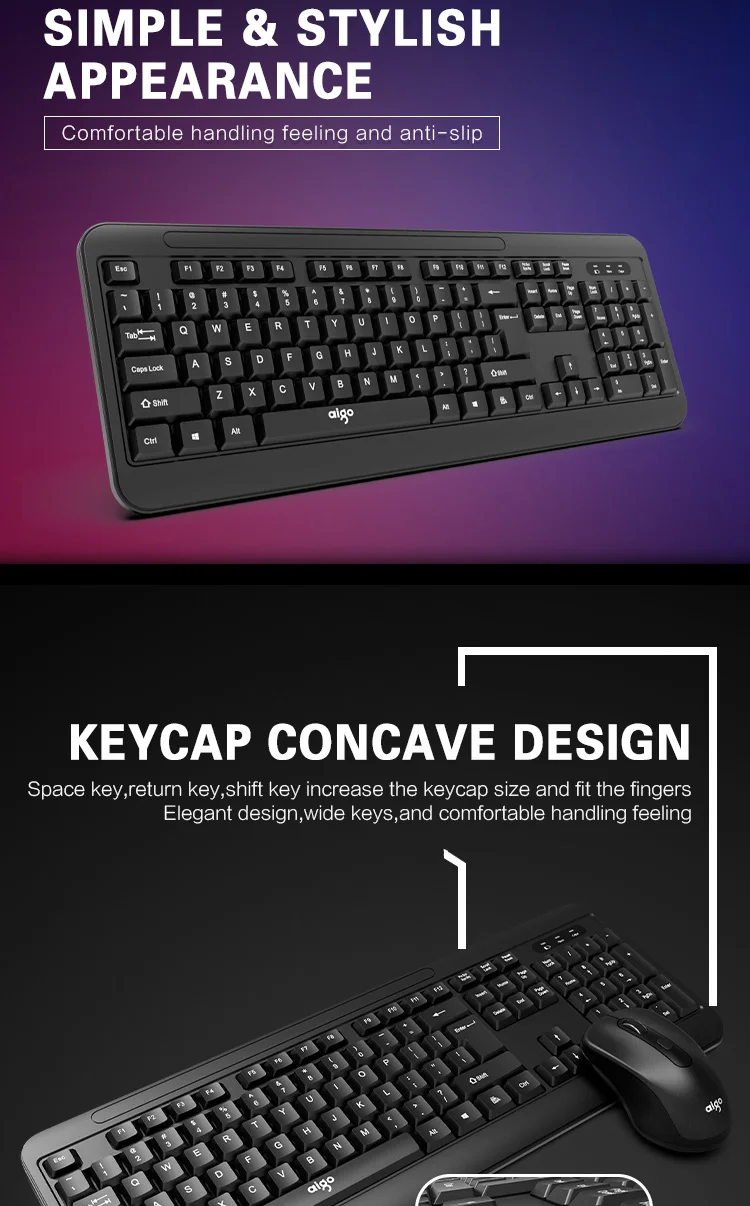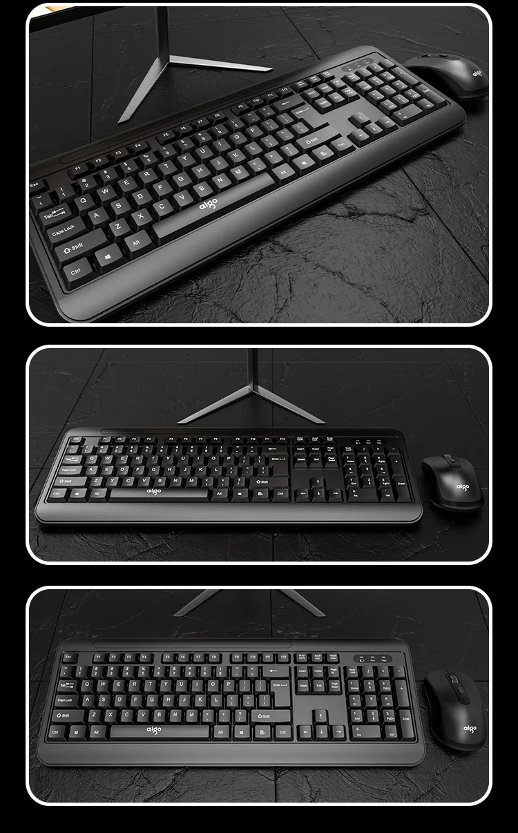 Aigo 2,4G Беспроводная Бесшумная клавиатура и мышь, игровой ПК геймер, клавиатура, мышь, комбинированный набор для ноутбука, ноутбука, настольного ПК