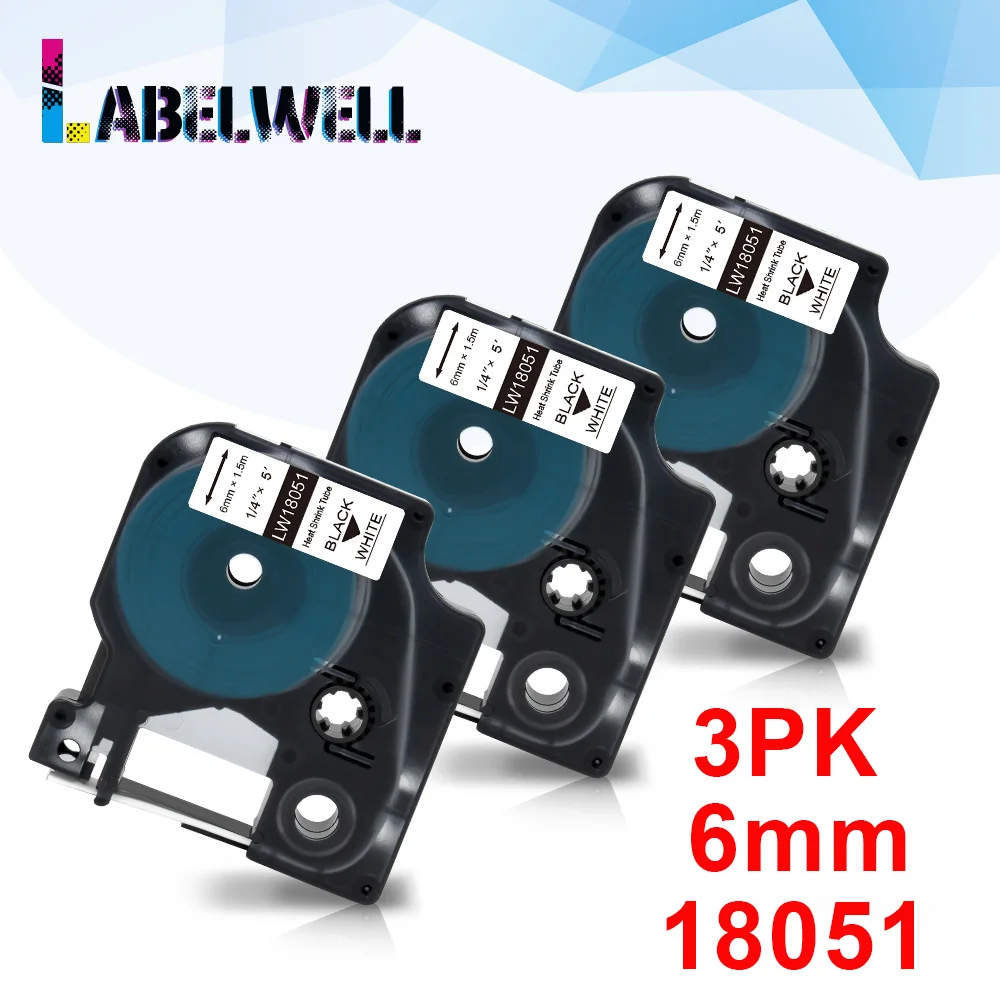 Labelwell 6/9/12/19/24 мм 18051 18052 18053 18054 18055 18056 18057 18058 1805443 1805444 терм усадочная трубка для промышленного запечатанных лент для черная и белая совместимый для Dymo носорог 4200 5000 6000 этикетировщик