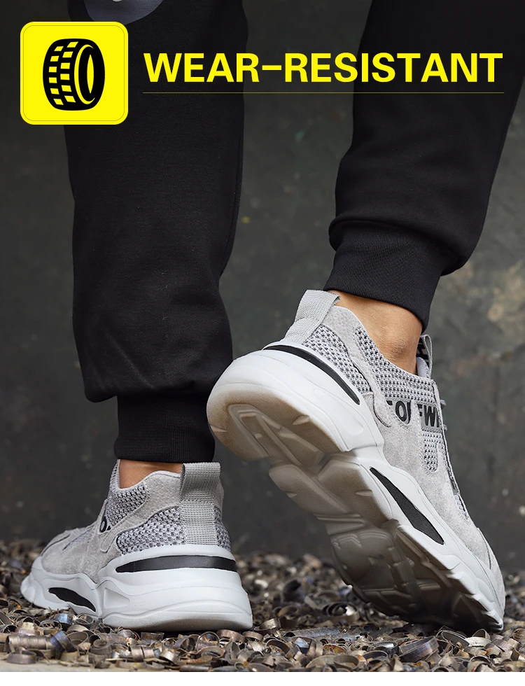 Защита от падения стального носка: европейский стандарт ударопрочность на стальную головку 200J Промежуточная подошва из кевлара анти-прокол: Эта стальная обувь для носка изготовлена из кевлара, который является защитным волокном. Он может защитить ноги от проколов острыми предметами, такими как гвозди, стальной стержень. Износостойкая резиновая подошва: прозрачная текстура, устойчивый захват на земле и нескользящая подошва. Супер светильник: это как вес пары кроссовок. Они помогут вам работать счастливо весь день, не выматывая ноги. С очень мягкими стельками и высокой эластичной подошвой ваши ноги безопасны и удобны. Трикотажный верх очень мягкий, сохраняет ваши ноги удобными и дышащими. Отлично подходит для тех, кто работает в промышленности, автопроизводстве, строительстве и производстве машин.