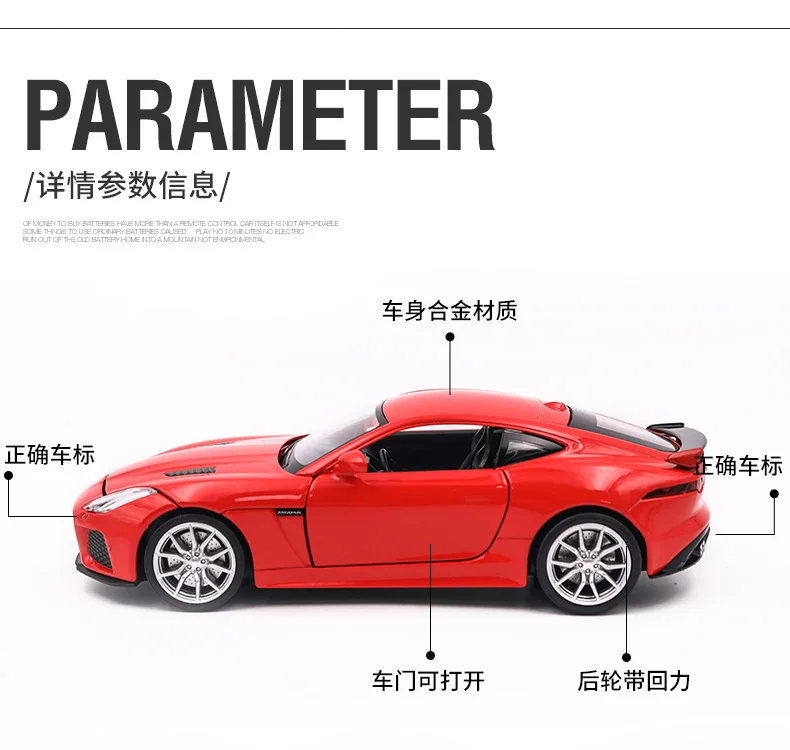 Бренд: мкд Название: Jaguar F-Type Соотношение: 1:32 Место происхождения: Китай Качество материала: металл + пластик + резина Упаковка: пузырь Обёрточная бумага Размеры: 15 см * 6 см * 5 см Назначение: подарок для детей, сбор Функция: четыре двери открываются и нажимаются скольжение и удивительный звук и свет Батарея: без Батарея