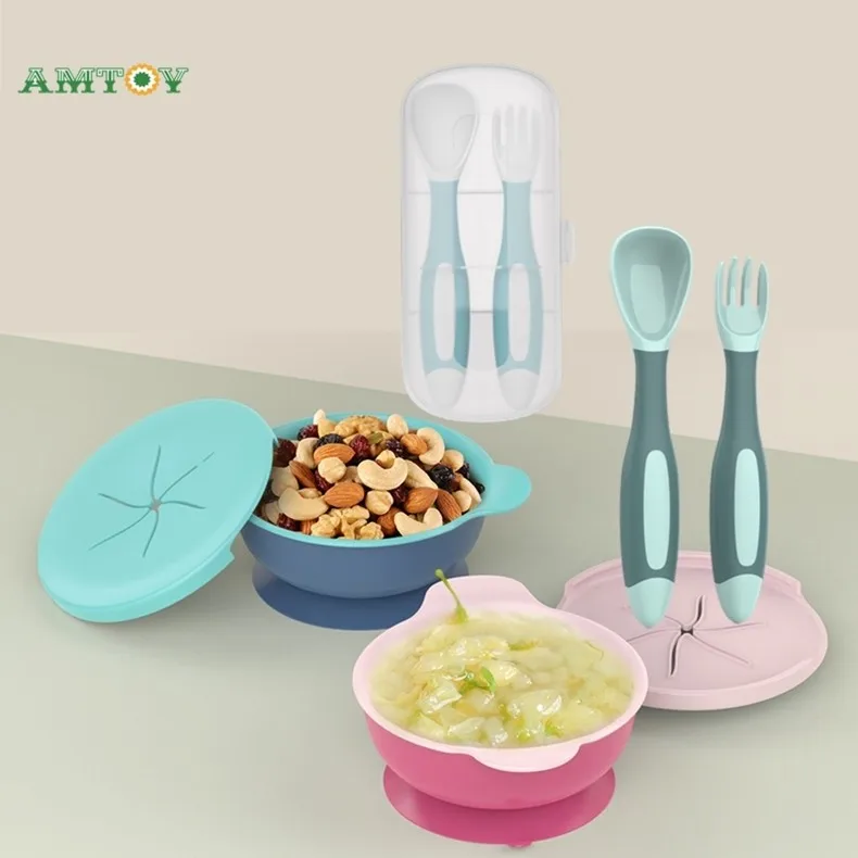Amtoy три в одном, соломенная миска для малышей, миска для закусок, каша, волшебная посуда, детские пищевые закуски, детская миска с защитой от проливания