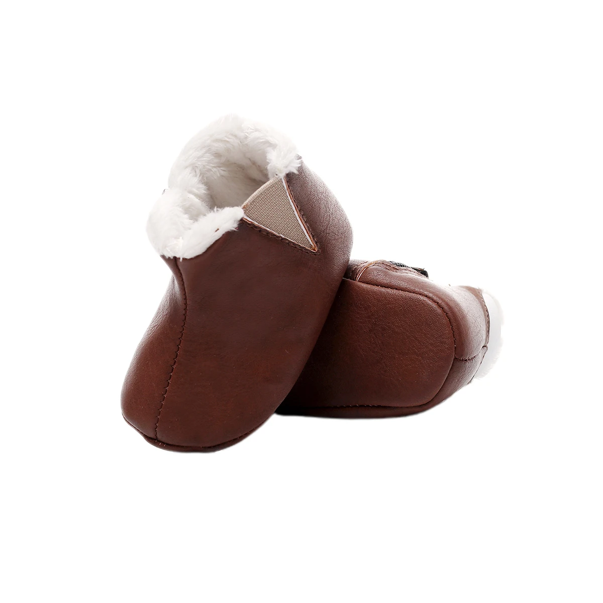 Кожаные ботинки для малышей; Зимняя теплая обувь на мягкой подошве с меховой подкладкой для малышей
