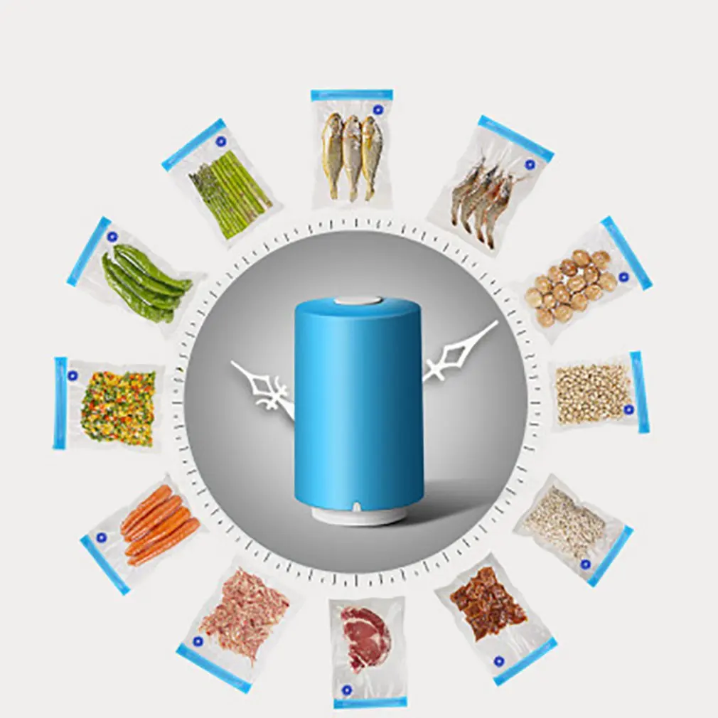 Перезаряжаемая конструкция для более удобного использования. И Литиевая мощность до 3 часов беспроводного времени работы. Функция: использует отличительную технологию всасывания для обеспечения герметичной среды для сохранения пищи, она была протестирована на 5X дольше и свежее, чем другие вакуумные упаковщики. Вакуумный Пакет: может быть заморожен, чтобы помочь вам продлить свежесть пищи и сохранить лучшую сохранность.Описание: