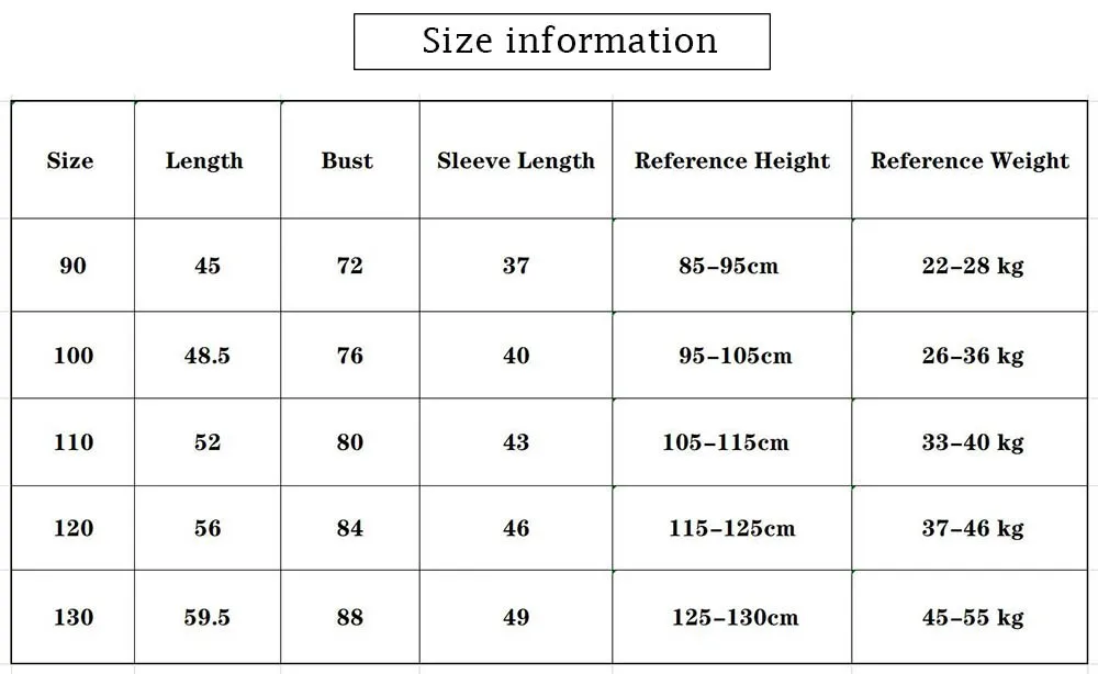 2. Пожалуйста, внимательно проверьте таблицу размеров перед покупкой товара.