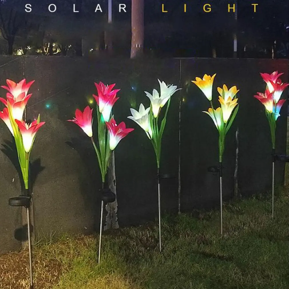 Этот солнечный светильник находится в форма для лилии и может использоваться как в саду, так и в пути, во дворе, так и на улице. Он прочный и с долговечной солнечной панелью.