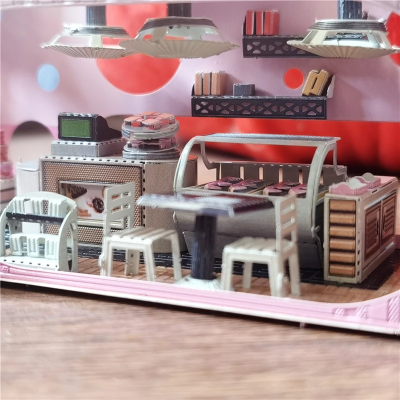 Бренд: Nuanyuan Название: магазин тортов Материал: нержавеющая сталь Размер модели: L11.6 x W5.8x H5.7CM Количество листов: 3 шт. Размер металлических листов: 22x11 см Возраст: 14 + Степень сложности:★★★☆☆ Характеристика: Оригинальный дизайн, клей не требуется. Состояние на 100% абсолютно новый и хорошего качества. Удивительные детали и прекрасный опыт DIY. Шаг за шагом руководство по изображению, легко следовать. Примечание: Мелкие детали должны храниться вдали от детей в возрасте до 3 лет. Будьте осторожны с острыми частями! Посылка включает в себя: 1 x торт магазин 3D DIY металлические модели наборы игрушка-головоломка Руководство пользователя на английском языке-1 шт.