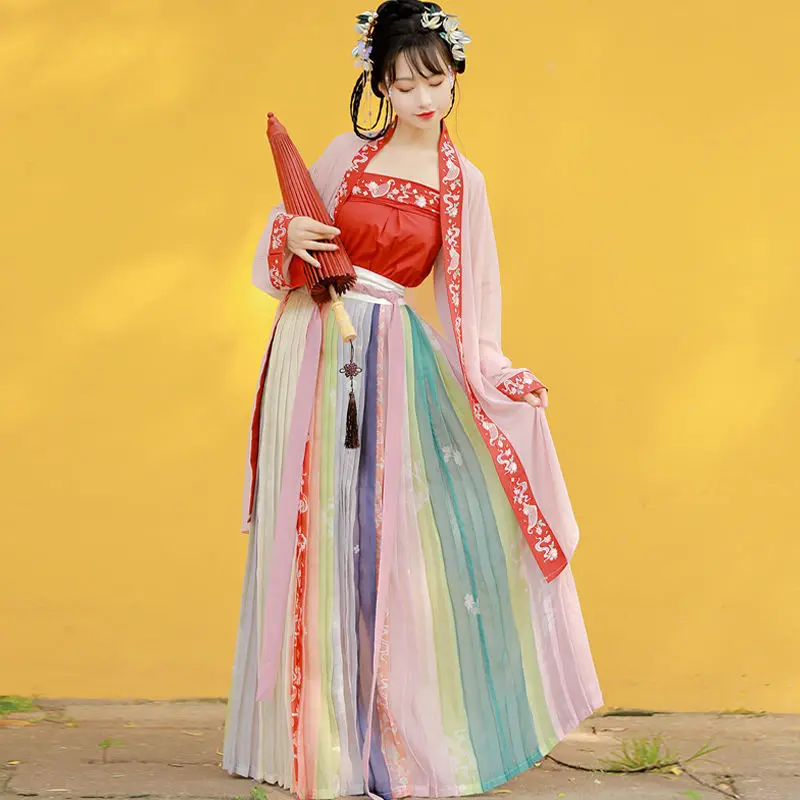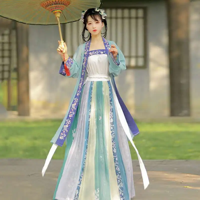 Древнее традиционное китайское женское элегантное платье ханьфу Ретро Династия Тан костюмы принцессы вышивка сценические танцевальные платья феи