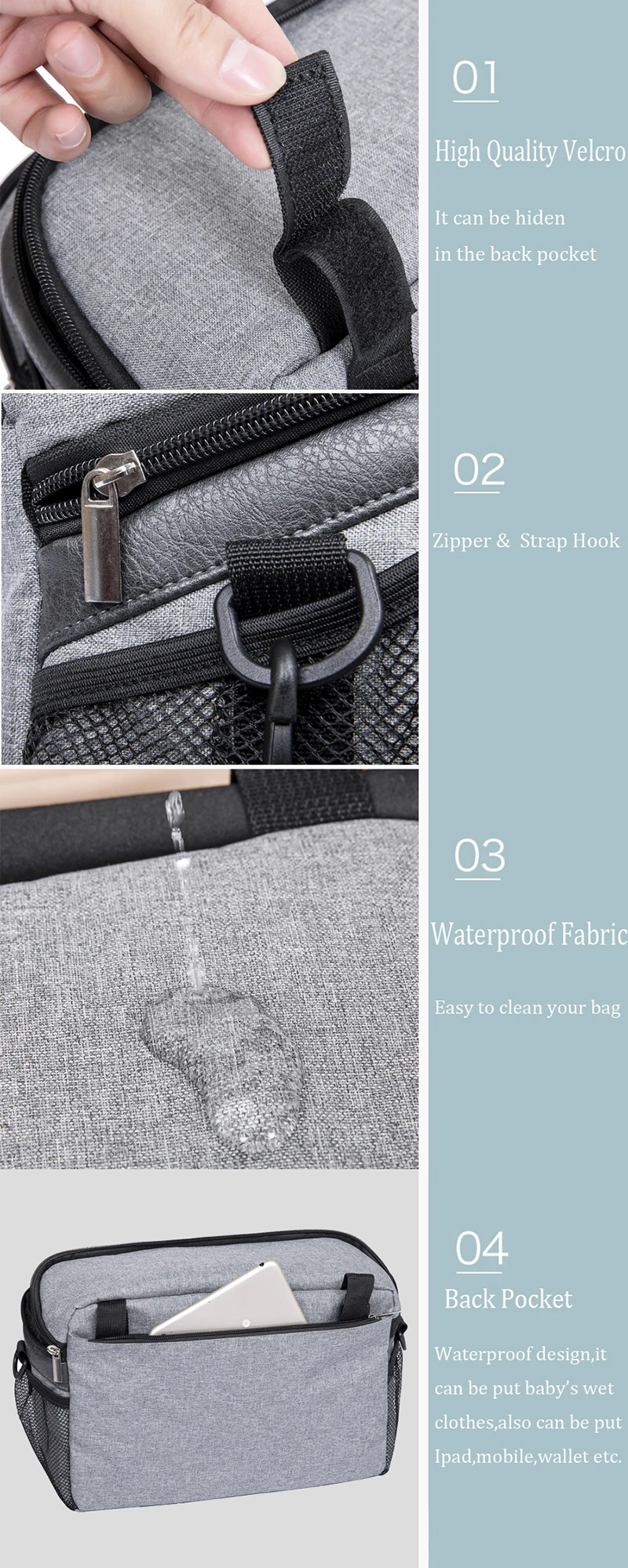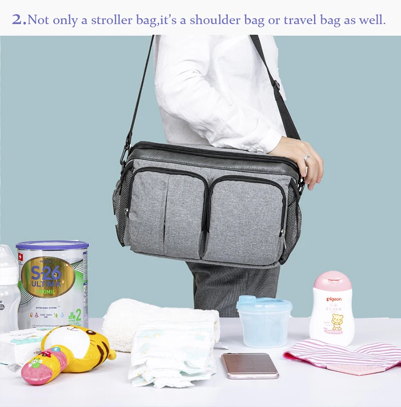 Характеристика: 【Большая Емкость 】 он может держать детскую одежду, детские бутылочки, подгузники, влажные салфетки, маленькие банки для сухого молока, мобильные телефоны, ключи и т. д., удобно для вас и ребенка хранить то, что вы хотите, когда выходите. 【Adjustable】ремни подходят для большинства колясок, подходят как на колясках, так и на ручках коляски Застежка-молния с ремешком для самостоятельного использования, открытый задний карман для удобного доступа 【Размер 】 30x12x1 7 см/с молнией 33x14x23см 【Материал 】 полиэстер/водонепроницаемый, без BPA, без ФТАЛАТА 【Цвет 】 серый, черный, фиолетовый, зеленый, синий, розовый 【Упаковка 】 1 шт. сумка для детской коляски